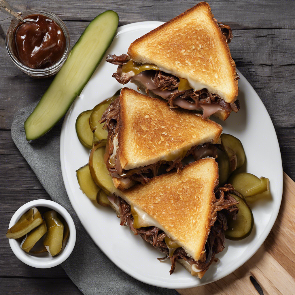 BBQ Pulled Beef Grilled Cheese with Pickles