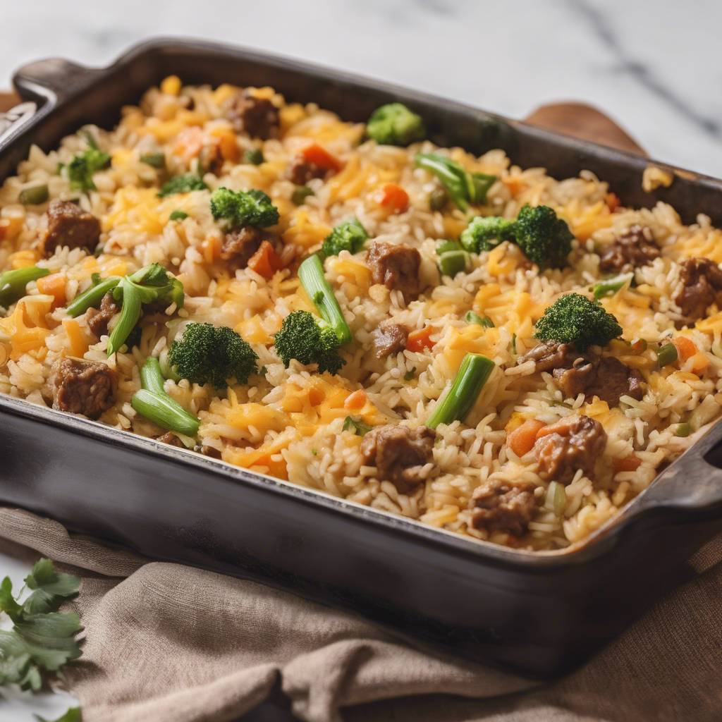 Beef and Vegetable Rice Casserole, with its comforting blend of savory beef, hearty vegetables, and fluffy rice, has been a beloved dish for generations. The addition of extra cheese takes this classic casserole to a whole new level of indulgence. This dish has its roots in home cooking, with variations found in kitchens across the world. Chefs in the American South often add a generous helping of cheddar or mozzarella to create a gooey, cheesy topping. In Italy, Parmesan or Fontina cheese adds a rich, nutty flavor. For the best version of this dish, seek out high-quality cheese and fresh, seasonal vegetables. Whether served as a weeknight dinner or a special occasion meal, this cheesy twist on Beef and Vegetable Rice Casserole is sure to delight.