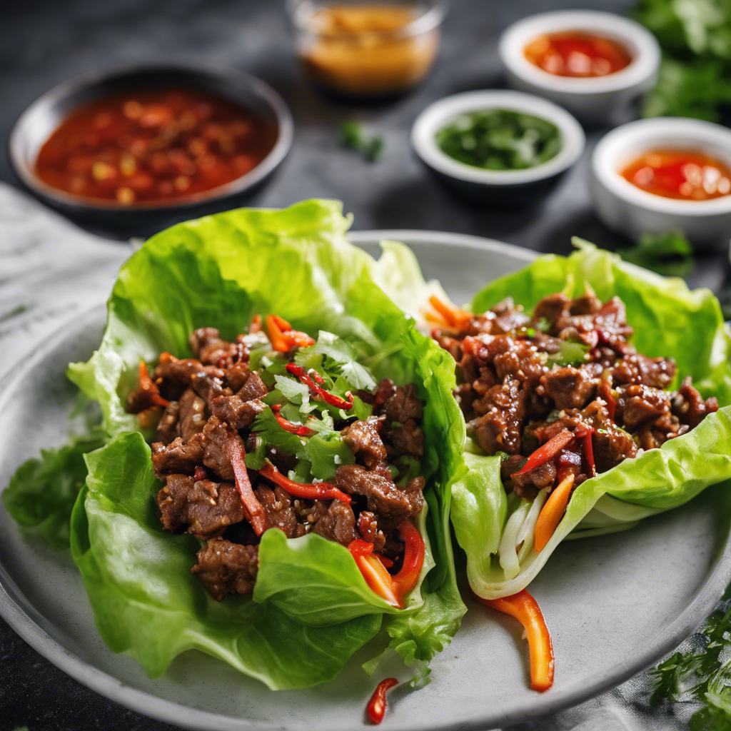 Beef Lettuce Wraps with spicy Sriracha sauce have a rich history rooted in Asian cuisine. This dish originated in China and gained popularity in the United States through the renowned P.F. Chang's restaurant chain. The dish features tender, savory beef cooked with a blend of aromatic spices and served with a zesty Sriracha sauce, all wrapped in crisp, fresh lettuce leaves. The key to perfecting this dish lies in the balance of flavors, with the heat of the Sriracha complementing the umami of the beef. Today, the best versions of this dish can be found in upscale Asian fusion restaurants, where chefs skillfully blend traditional and modern flavors. The key to making this dish shine is using high-quality beef and finding the perfect balance of heat and flavor in the Sriracha sauce. Whether enjoyed as an appetizer or a main course, Beef Lettuce Wraps with spicy Sriracha sauce are a delightful fusion of flavors and textures that continue to captivate food enthusiasts worldwide.