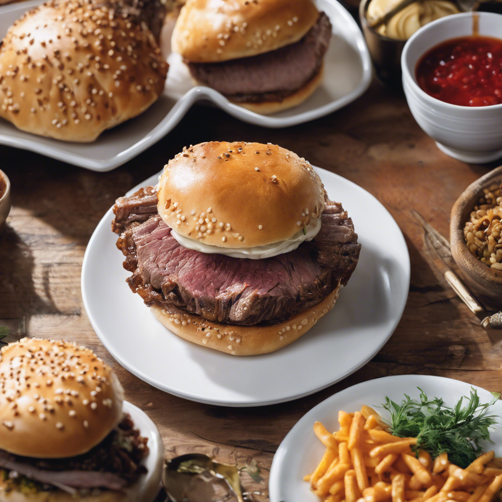 Beef on Weck is a classic sandwich that originated in Buffalo, New York. The dish features thinly sliced roast beef piled high on a kummelweck roll, which is a roll topped with pretzel salt and caraway seeds. The sandwich is typically served with a side of au jus for dipping. The history of Beef on Weck dates back to the 19th century when German immigrants brought the kummelweck roll to Buffalo. Today, the dish is a staple in Buffalo's culinary scene, with many local restaurants and taverns serving their own delicious versions. Schwabl's, a historic restaurant in Buffalo, is renowned for its exceptional Beef on Weck. The key to a perfect Beef on Weck lies in the quality of the roast beef and the freshness of the kummelweck roll. For a twist on the classic, some chefs experiment with different seasonings for the roll or add horseradish for an extra kick. If you're in Buffalo, be sure to try this iconic dish at a local eatery for an authentic experience.