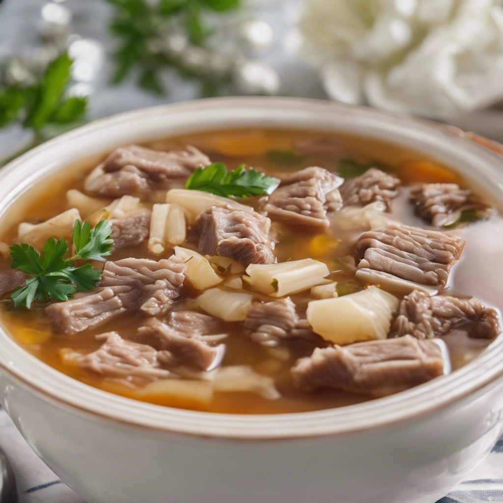 Beef tripe soup, also known as menudo, is a traditional dish with a rich history dating back to ancient times. This hearty soup has been enjoyed in various cultures, including Mexican, Filipino, and Spanish cuisines. The dish typically features beef tripe, a type of edible lining from the stomach of a cow, slow-cooked with spices, herbs, and vegetables to create a flavorful and comforting soup. In Mexico, menudo is often enjoyed as a popular hangover cure and is a staple at family gatherings and celebrations. Renowned chefs like Rick Bayless have popularized their own versions of menudo, adding their unique twists to the classic recipe. In the Philippines, a similar dish called "callos" features beef tripe cooked with chorizo, bell peppers, and garbanzo beans, creating a savory and slightly spicy stew. The key to a delicious beef tripe soup lies in the slow cooking process, allowing the flavors to meld together and the tripe to become tender. The use of aromatic spices such as cumin, oregano, and bay leaves is essential to infuse the soup with depth and warmth. While some recipes call for a spicy kick from chili peppers, others emphasize the richness of the broth with the addition of tomatoes and onions. Today, some of the best versions of beef tripe soup can be found in authentic Mexican and Filipino restaurants, where skilled chefs honor traditional recipes while adding their own creative flair. Whether it's served with a side of warm tortillas or over steamed rice, beef tripe soup continues to be a beloved comfort food, cherished for its robust flavors and cultural significance.