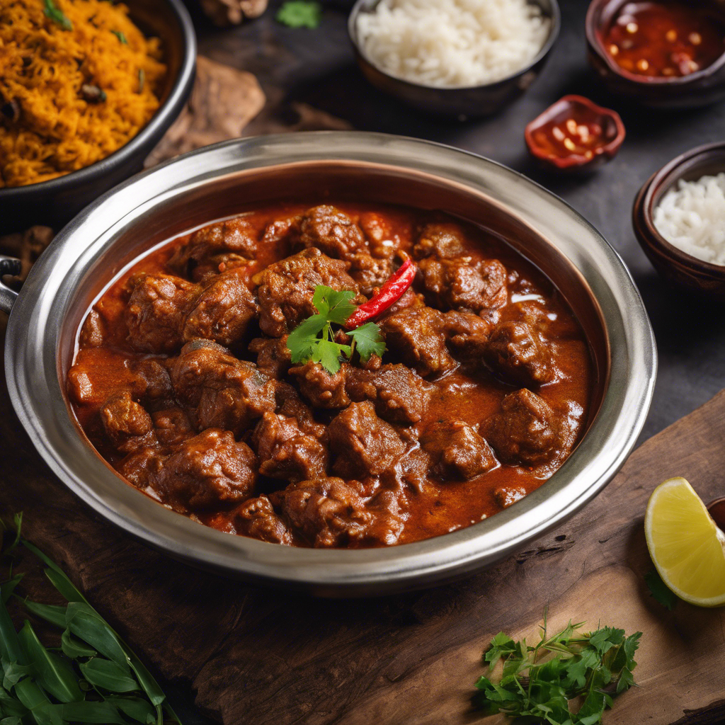 Beef Vindaloo, a fiery and flavorful dish, has its roots in the Indian state of Goa, a region known for its bold and zesty cuisine. The dish was influenced by the Portuguese who introduced vinegar, a key ingredient in the Vindaloo marinade. The name "Vindaloo" is derived from the Portuguese dish "carne de vinha d'alhos," which means meat marinated in wine vinegar and garlic. This dish is traditionally prepared by marinating beef in a blend of vinegar, fiery red chilies, and aromatic spices like cumin, coriander, and cloves. The meat is then slow-cooked to tender perfection, allowing the flavors to meld and intensify. Chefs and home cooks alike take pride in perfecting the balance of heat and tanginess in this iconic dish. Today, the best versions of Beef Vindaloo can be found in authentic Goan restaurants or Indian eateries that stay true to the traditional recipe. To achieve the authentic taste, it's crucial to get the spice blend and marination process just right. While the dish is typically made with beef, there are popular variations using pork, lamb, or even chicken, offering a diverse range of options for enthusiasts of this spicy delight. Whether you're a heat-seeker or simply crave a bold culinary experience, Beef Vindaloo with extra spicy sauce is sure to tantalize your taste buds with its rich history and explosive flavors.