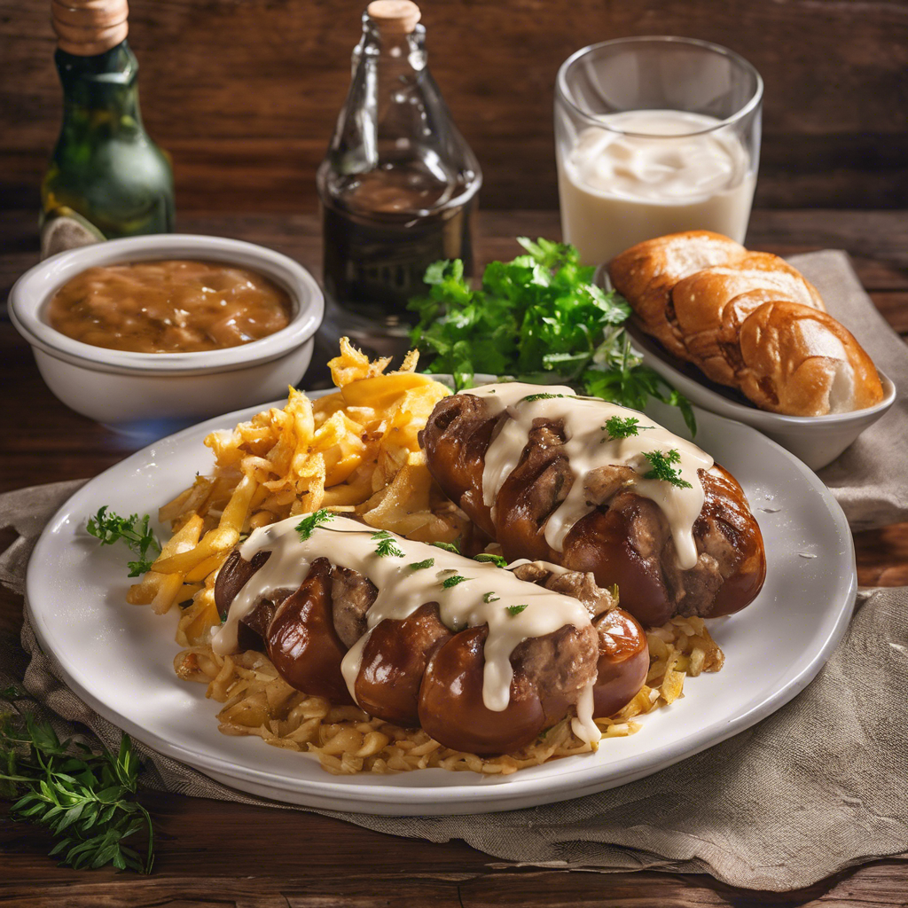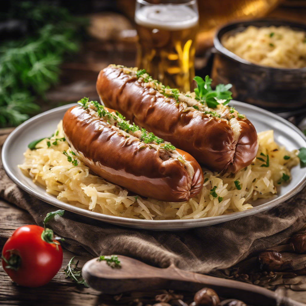 Beer-Braised Bratwurst and Sauerkraut is a classic German dish that has been enjoyed for centuries. The dish originated in the southern regions of Germany, where bratwurst sausages were a staple food. The sausages are first browned in a skillet, then braised in beer along with sauerkraut, onions, and seasonings. The beer infuses the bratwurst with a rich, malty flavor while the sauerkraut adds a tangy and slightly sour taste. This hearty and comforting dish is often served with a side of creamy mashed potatoes or crusty bread. One of the most famous versions of this dish can be found in the beer gardens of Munich, where it is a beloved accompaniment to the city's world-renowned beers. Chefs in this region take great pride in using locally brewed beers and high-quality bratwurst to create the perfect balance of flavors. To make the best Beer-Braised Bratwurst and Sauerkraut, it's essential to use a good quality German-style bratwurst, as well as a flavorful beer, such as a malty Oktoberfest or a rich bock beer. The sauerkraut should be well-drained and rinsed to remove excess saltiness, and the onions and seasonings should be sautéed until fragrant before adding the beer and sausages. An alternative method for making this dish is to slow-cook the bratwurst and sauerkraut in a crockpot, allowing the flavors to meld together over several hours. This method results in incredibly tender and flavorful bratwurst that practically melts in your mouth. Today, Beer-Braised Bratwurst and Sauerkraut can be found in German restaurants and beer gardens around the world, but for the most authentic experience, a visit to Germany during Oktoberfest is a must.