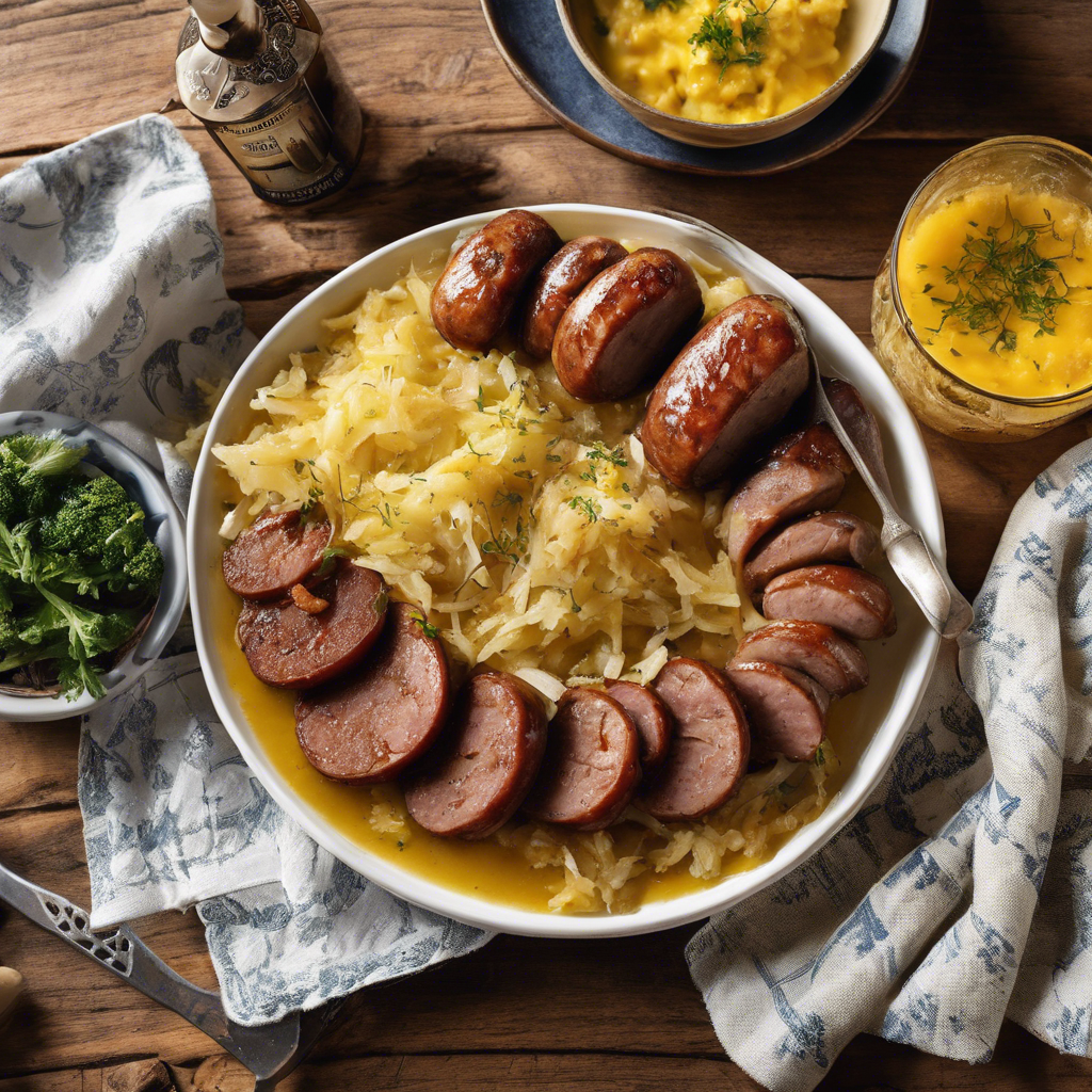 The history of Beer-Braised Sausage and Sauerkraut with added mustard can be traced back to the traditional German dish, known as "Wurst und Sauerkraut." This hearty and flavorful dish has been a staple in German cuisine for centuries, with its origins rooted in the regions of Bavaria and Alsace. The combination of savory sausages, tangy sauerkraut, and zesty mustard creates a symphony of flavors that has stood the test of time. The dish gained popularity in the United States with the influx of German immigrants in the 19th century, and it has since become a beloved comfort food across the country. Renowned chefs and restaurants, such as the historic Hofbräuhaus in Munich and the iconic Katz's Delicatessen in New York City, have perfected the art of preparing this classic dish. The key to achieving the perfect Beer-Braised Sausage and Sauerkraut lies in using high-quality sausages, authentic sauerkraut, and a flavorful beer for braising. Additionally, the addition of tangy mustard adds a delightful kick to the dish, elevating its taste to new heights. Today, the best versions of this dish can be found in authentic German beer halls and gastropubs that take pride in preserving traditional recipes. For those looking to recreate this dish at home, sourcing authentic German sausages, homemade sauerkraut, and a robust mustard is essential for an authentic and delicious outcome. Whether enjoyed at a bustling beer hall in Munich or prepared with love in a home kitchen, Beer-Braised Sausage and Sauerkraut with added mustard continues to be a timeless favorite for food enthusiasts around the world.