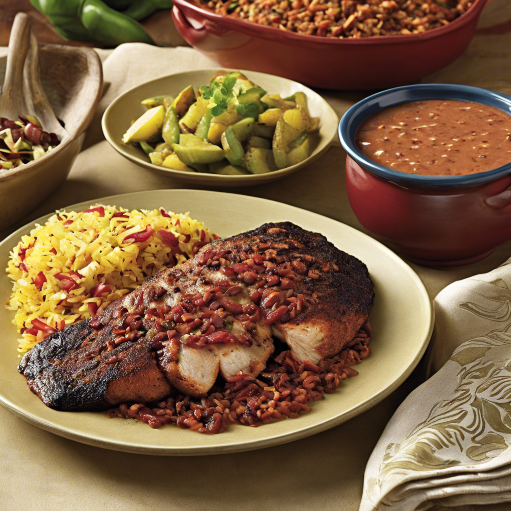 Blackened Catfish with Red Beans and Rice is a classic Southern dish that originated in the heart of Louisiana. This flavorful and spicy dish has its roots in Cajun and Creole cuisine, with influences from African, French, and Spanish cooking traditions. The dish is a perfect blend of smoky, spicy, and savory flavors, making it a favorite in the region. The blackening technique, popularized by Chef Paul Prudhomme in the 1980s, involves coating the catfish in a blend of spices, including paprika, cayenne pepper, and thyme, then searing it in a hot cast-iron skillet to create a charred crust. The red beans and rice, a staple in Louisiana cooking, are simmered with onions, bell peppers, celery, and a variety of seasonings to create a rich and hearty accompaniment to the blackened catfish. Today, this dish can be found in many restaurants throughout the South, particularly in Louisiana and Mississippi. One of the best places to enjoy this dish is in New Orleans, where renowned chefs put their own spin on the classic recipe. To make the perfect Blackened Catfish with Red Beans and Rice, it's crucial to get the blackening spice blend just right. The catfish should be fresh and firm, and the red beans should be cooked until they are creamy and flavorful. For a unique twist on this dish, some chefs also incorporate ingredients like Andouille sausage or Tasso ham into the red beans and rice for added depth of flavor. Whether enjoyed at a fine dining restaurant or a down-home eatery, Blackened Catfish with Red Beans and Rice is a true taste of the South.