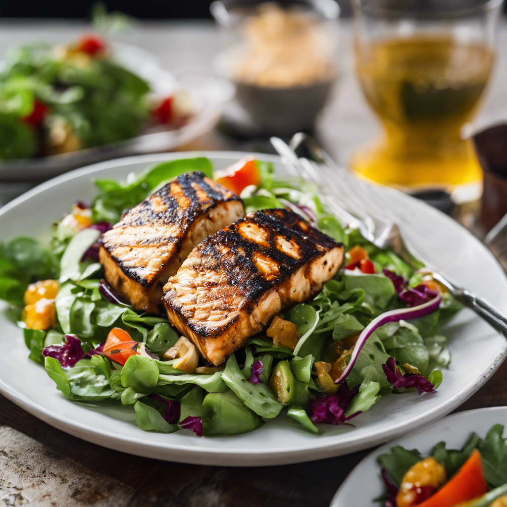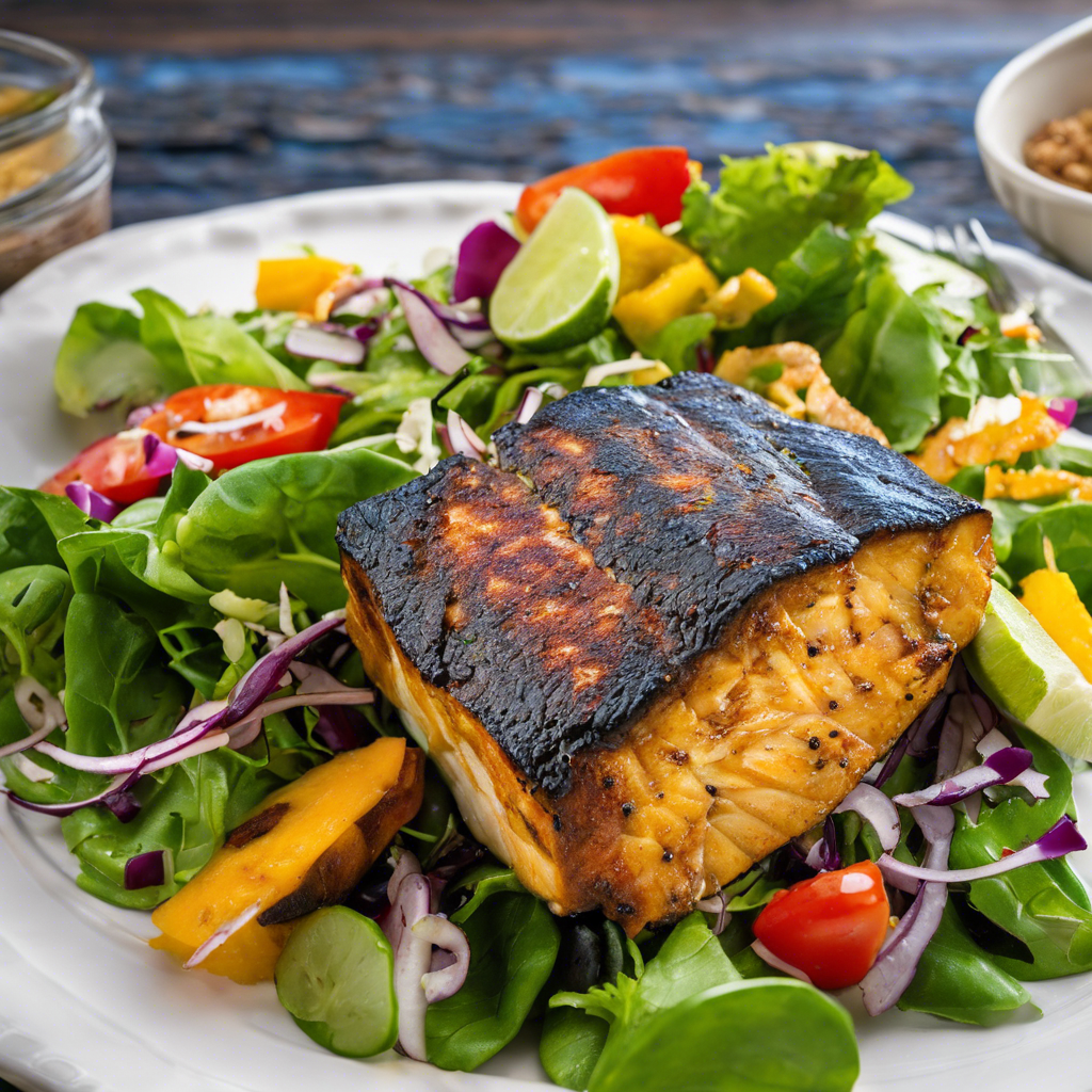Blackened Mahi Mahi Salad is a flavorful and healthy dish that has its roots in the coastal regions of the Caribbean and the Gulf of Mexico. The dish features a perfectly seasoned and seared mahi mahi fillet served on a bed of fresh mixed greens, cherry tomatoes, cucumbers, and a zesty vinaigrette dressing. The blackening technique, which involves coating the fish in a blend of spices and searing it in a hot skillet, adds a smoky and spicy flavor to the dish. Renowned chefs like Emeril Lagasse and Paul Prudhomme have popularized the blackening technique, making it a staple in Cajun and Creole cuisine. Today, the best versions of this dish can be found in coastal restaurants and seafood eateries, where the freshness of the fish and the quality of the seasoning are paramount. To make the perfect Blackened Mahi Mahi Salad, it's crucial to get the blackening spice blend just right, as it sets the tone for the entire dish. Additionally, the freshness of the mahi mahi and the crispness of the salad ingredients are essential for a delightful dining experience. For a unique twist, some chefs also incorporate tropical fruits like mango or pineapple into the salad for a burst of sweetness that complements the spicy blackened fish. Whether enjoyed at a seaside restaurant or prepared at home, Blackened Mahi Mahi Salad is a delightful fusion of flavors that captures the essence of coastal cuisine.