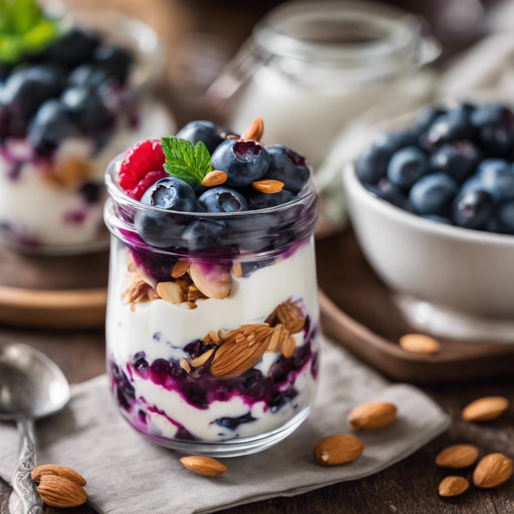 The Blueberry Almond Yogurt Parfait is a delightful and healthy dish that has become a popular choice for breakfast or a light snack. This parfait typically consists of layers of creamy yogurt, fresh blueberries, and crunchy almonds, creating a perfect balance of flavors and textures. The dish has its origins in the health-conscious food movement, with chefs and health enthusiasts experimenting with different combinations of fruits, nuts, and yogurt to create a satisfying and nutritious treat. Today, this dish can be found in many cafes and breakfast spots, particularly in regions known for their fresh blueberries, such as the Pacific Northwest. The key to a perfect Blueberry Almond Yogurt Parfait lies in using high-quality, fresh ingredients, particularly ripe, juicy blueberries and crunchy, toasted almonds. Some variations of this dish may include the addition of granola or honey for extra sweetness and crunch. For those looking to try a unique twist on this classic parfait, consider using Greek yogurt for a thicker, creamier texture, or adding a drizzle of almond butter for an extra nutty flavor. Whether enjoyed at a trendy brunch spot or made at home, the Blueberry Almond Yogurt Parfait is a delightful and versatile dish that is sure to satisfy any craving for a wholesome and delicious treat.