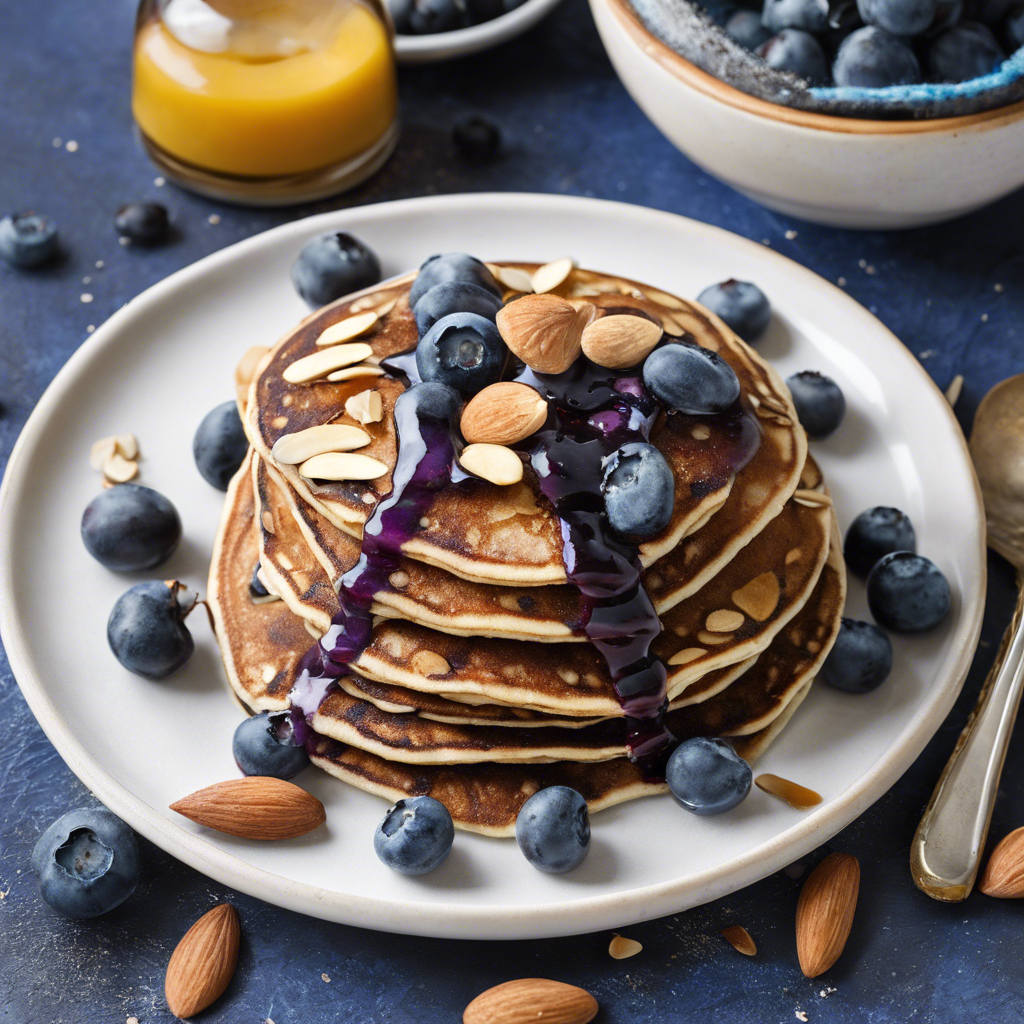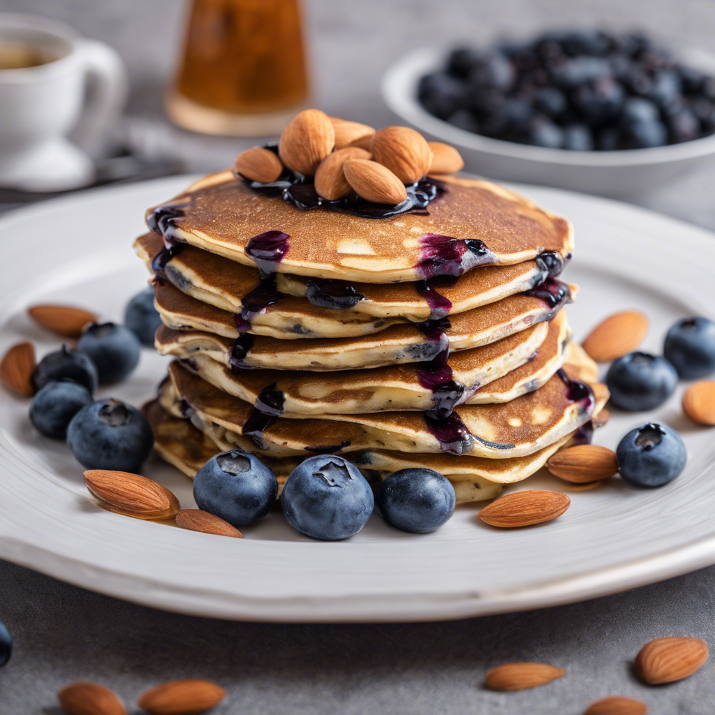 Blueberry Buckwheat Pancakes with Sliced Almonds