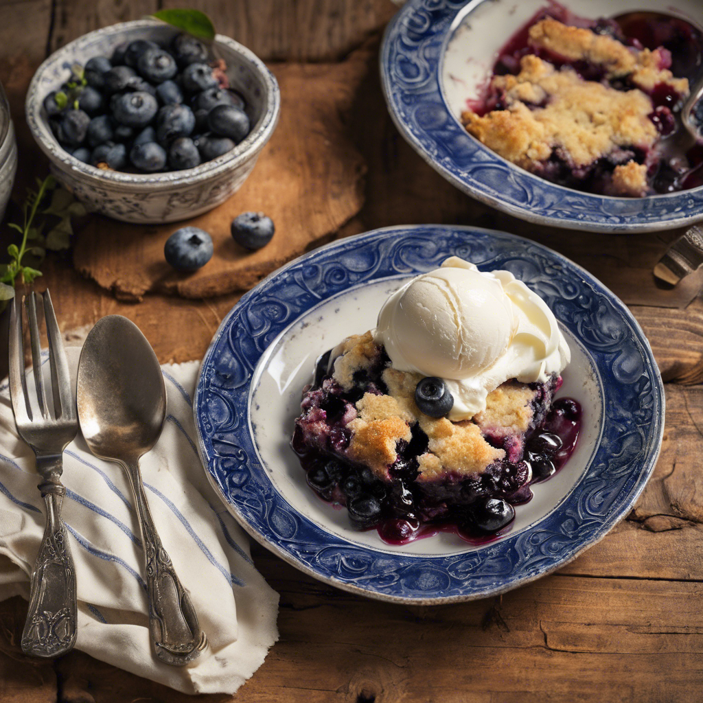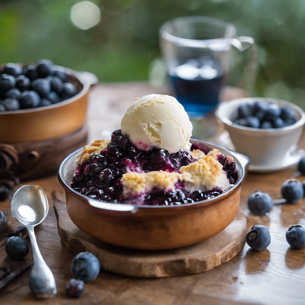 Blueberry Cobbler is a classic American dessert that has been enjoyed for generations. This sweet and fruity dish is believed to have originated in the Southern United States, where fresh blueberries are abundant. The combination of juicy blueberries, warm spices, and a buttery biscuit topping makes for a comforting and indulgent treat. Many renowned chefs and restaurants have put their own spin on this beloved dessert, incorporating local ingredients and innovative techniques. The addition of a scoop of creamy vanilla ice cream takes the Blueberry Cobbler to the next level, adding a delightful contrast of temperatures and flavors. One of the best versions of this dish can be found in the heart of the South, where chefs take pride in using plump, ripe blueberries and creating a perfectly golden and flaky biscuit topping. The key to a great Blueberry Cobbler lies in the quality of the blueberries and achieving the ideal balance of sweetness and tartness in the filling. While the traditional method of making Blueberry Cobbler involves baking the fruit filling with a layer of dough on top, some chefs have experimented with alternative techniques, such as adding a crumbly streusel topping or incorporating other fruits like peaches or raspberries for a unique twist. Whether enjoyed at a cozy diner in the countryside or a high-end restaurant in the city, Blueberry Cobbler with a scoop of vanilla ice cream is a timeless dessert that never fails to delight the taste buds.