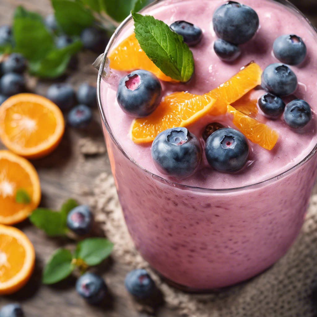 - In a blender, combine 1 cup of blueberries and 1/2 cup of orange juice. Blend until smooth.