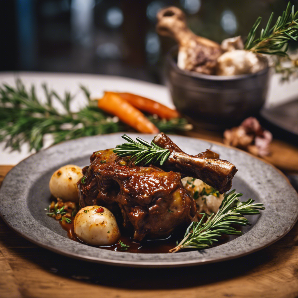 The history of Braised Lamb Shank with rosemary and garlic dates back to ancient Mediterranean cuisine, where slow-cooking tough cuts of meat with aromatic herbs was a common practice. This dish has been perfected by generations of skilled chefs in regions like Tuscany, Provence, and Greece, where it is a staple of traditional cooking. The tender, succulent meat infused with the earthy fragrance of rosemary and the pungent sweetness of garlic creates a truly unforgettable dining experience. Today, the best versions of this dish can be found in authentic Italian trattorias and French bistros, where chefs meticulously braise the lamb shanks to perfection. The key to getting this dish right lies in the slow cooking process, allowing the flavors to meld and the meat to become incredibly tender. For a twist, some chefs also add a splash of red wine or balsamic vinegar to enhance the depth of flavor. Whether enjoyed in a rustic countryside tavern or a fine dining establishment, Braised Lamb Shank with rosemary and garlic is a timeless classic that continues to captivate food enthusiasts worldwide.
