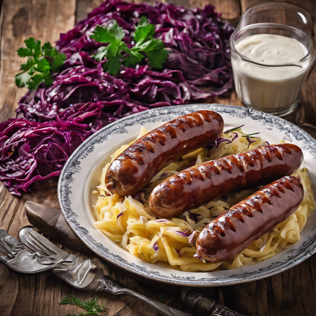 Bratwurst with red cabbage is a classic German dish that has been enjoyed for centuries. The history of this dish can be traced back to the regions of Bavaria and Thuringia, where it was traditionally served at beer gardens and festivals. The combination of savory bratwurst sausages and sweet and tangy red cabbage has become a staple in German cuisine. One of the most famous versions of this dish can be found in the historic beer halls of Munich, where skilled chefs meticulously prepare the bratwurst by hand, using a blend of pork, veal, and a secret mix of spices. The red cabbage is slow-cooked with apples, onions, and a touch of vinegar to create a rich, flavorful side dish that perfectly complements the juicy sausages. Today, the best versions of bratwurst with red cabbage can be found in authentic German restaurants around the world, where chefs honor the traditional methods of preparation. The key to getting this dish right lies in the quality of the bratwurst and the slow cooking of the red cabbage to achieve the perfect balance of flavors. For a unique twist on this classic dish, some chefs also incorporate beer into the cooking process, infusing the bratwurst and red cabbage with an extra layer of depth and richness. Whether enjoyed at a bustling beer hall in Germany or a cozy German eatery abroad, bratwurst with red cabbage continues to be a beloved dish that celebrates the rich culinary heritage of Germany.