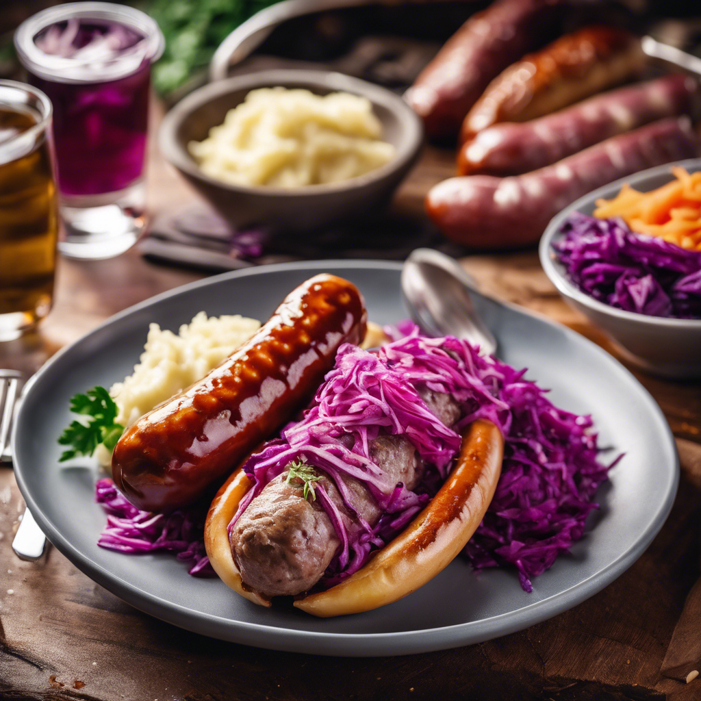 Bratwurst with red cabbage and a side of creamy mashed potatoes is a classic German dish that has stood the test of time. This hearty meal has its roots in the Bavarian region, where it was traditionally served at beer gardens and family gatherings. The juicy, flavorful bratwurst is grilled to perfection, while the tangy, sweet red cabbage is slow-cooked with apples and spices. The creamy mashed potatoes provide the perfect balance to the rich flavors of the bratwurst and red cabbage. Today, this dish can be found in many German restaurants around the world, but for an authentic experience, head to Munich or Nuremberg. The key to getting this dish right lies in the quality of the bratwurst and the slow-cooking of the red cabbage to achieve that perfect balance of sweet and tangy flavors. For a twist, some chefs also add a splash of beer to the red cabbage for an extra depth of flavor.