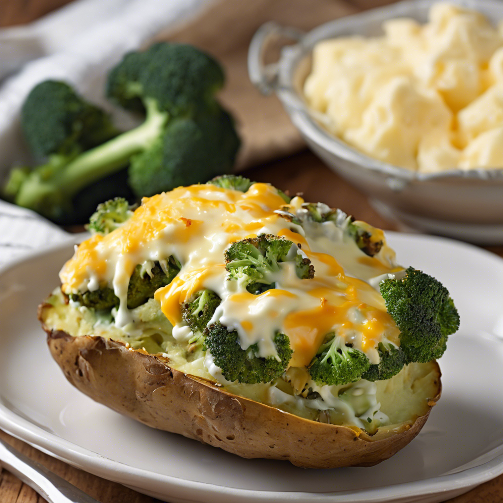 The history of the Broccoli and Cheddar Stuffed Baked Potato with added sour cream can be traced back to the heartwarming comfort food of the American South. This dish combines the humble baked potato with the richness of cheddar cheese, the earthy flavor of broccoli, and the creamy tang of sour cream. It's a beloved staple in many American households and has also found its way onto the menus of cozy diners and family-owned restaurants across the country. The key to a perfect Broccoli and Cheddar Stuffed Baked Potato lies in the quality of the ingredients. The potato should be baked to fluffy perfection, the broccoli should be tender-crisp, and the cheddar cheese should be gooey and flavorful. The addition of sour cream brings a delightful creaminess and a touch of acidity that elevates the dish to new heights. For those seeking the best version of this dish, look no further than the charming diners of the Midwest, where skilled chefs have perfected the art of the stuffed baked potato. Alternatively, home cooks can experiment with alternative methods such as adding bacon or scallions for a unique twist on this classic recipe. Whether enjoyed as a side dish or a hearty main course, the Broccoli and Cheddar Stuffed Baked Potato with added sour cream is sure to satisfy cravings for a comforting and indulgent meal.