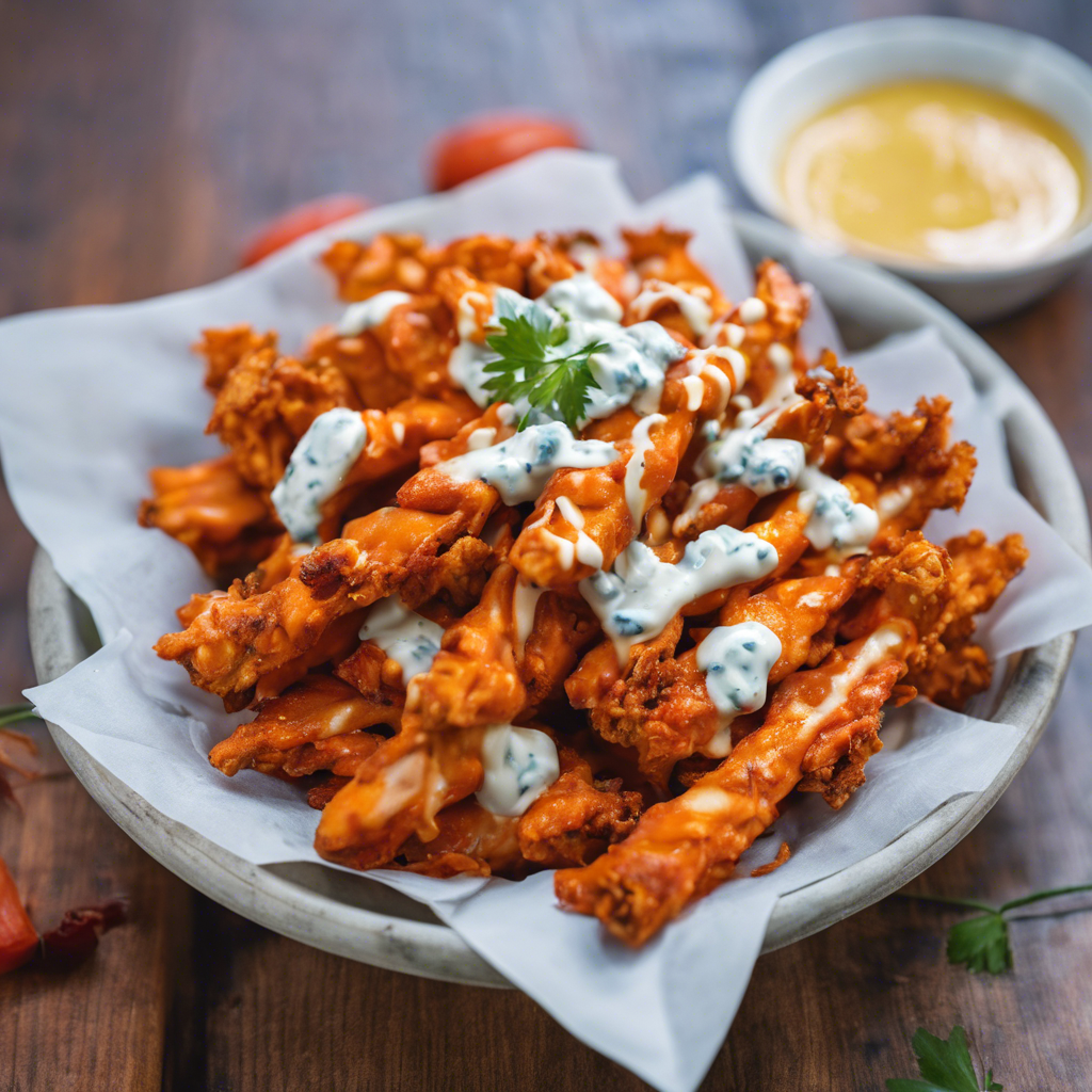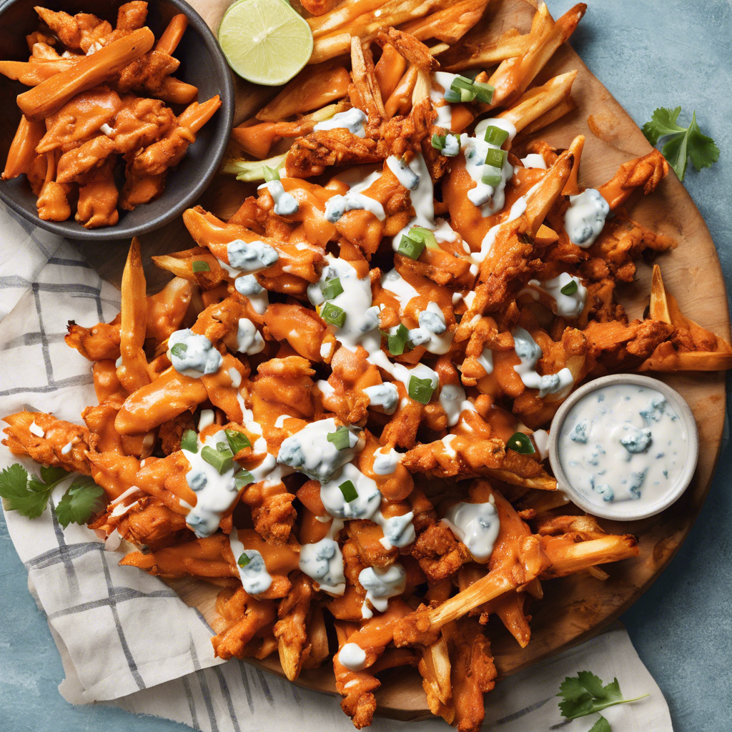 Buffalo Chicken Fries are a mouthwatering combination of crispy fries, spicy buffalo chicken, and tangy blue cheese dressing. This indulgent dish originated in the United States, gaining popularity in the 2000s. The spicy buffalo chicken is typically made by tossing chicken strips in a mixture of hot sauce and butter, then layered on top of a bed of golden fries. The blue cheese dressing adds a creamy and cooling element to balance out the heat. Chefs in Buffalo, New York, are known for perfecting this dish, and it has since become a staple in sports bars and casual dining restaurants across the country. For the best version of this dish, look for crispy fries, tender and spicy buffalo chicken, and a rich and flavorful blue cheese dressing.