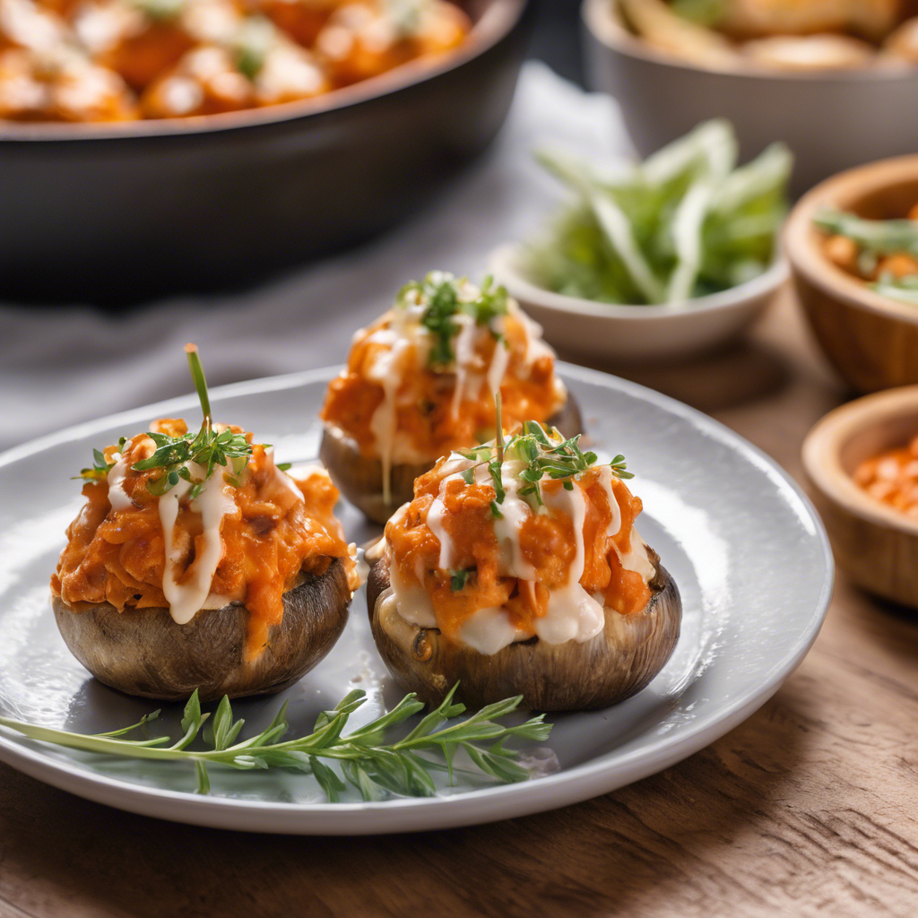 Buffalo chicken stuffed mushrooms are a delicious and savory appetizer that combines the bold flavors of buffalo chicken with the earthy richness of mushrooms. This dish has its roots in the United States, particularly in the Buffalo, New York region, where the iconic buffalo chicken flavor originated. The dish gained popularity in the 20th century and has since become a staple at parties, restaurants, and sports bars across the country. Chefs and home cooks alike have put their own spin on the recipe, incorporating ingredients like blue cheese, celery, and hot sauce to create a perfect balance of heat and tanginess. For the best version of this dish, look for a restaurant or caterer known for their expertise in buffalo chicken dishes. The key to getting this dish right lies in the balance of flavors, ensuring that the buffalo chicken filling is spicy, creamy, and packed with flavor, while the mushrooms are tender and juicy. Whether baked or grilled, these stuffed mushrooms are sure to be a hit at any gathering.