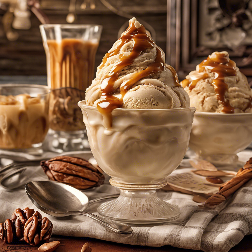 Butter Pecan Ice Cream with a caramel swirl is a delightful combination of creamy, nutty flavors and sweet, gooey caramel. This classic ice cream flavor has been a favorite for decades, with its origins dating back to the early 20th century. The rich, buttery base is infused with toasted pecans, adding a satisfying crunch to every bite. The addition of a luscious caramel swirl takes this beloved treat to the next level, creating a perfect balance of flavors. Whether enjoyed in a traditional ice cream parlor or homemade by talented chefs, this indulgent dessert is a timeless delight. For the best version of this dish, seek out artisanal ice cream shops or gourmet dessert establishments known for their high-quality ingredients and expert craftsmanship. The key to achieving the perfect Butter Pecan Ice Cream with a caramel swirl lies in using premium pecans, real butter, and a decadent caramel sauce. Alternatively, adventurous home cooks can experiment with making their own caramel swirl using various techniques, such as dry caramel or wet caramel, to achieve the desired consistency and flavor profile. Whether served in a classic waffle cone or as a decadent sundae, this irresistible treat is sure to satisfy any sweet tooth.