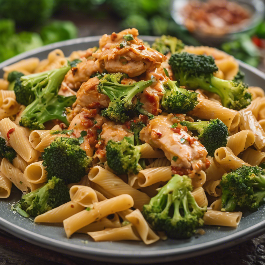 A delicious and spicy pasta dish with tender chicken and crisp broccoli.
