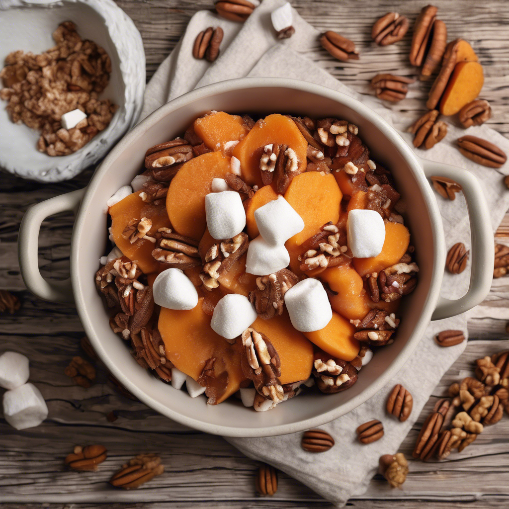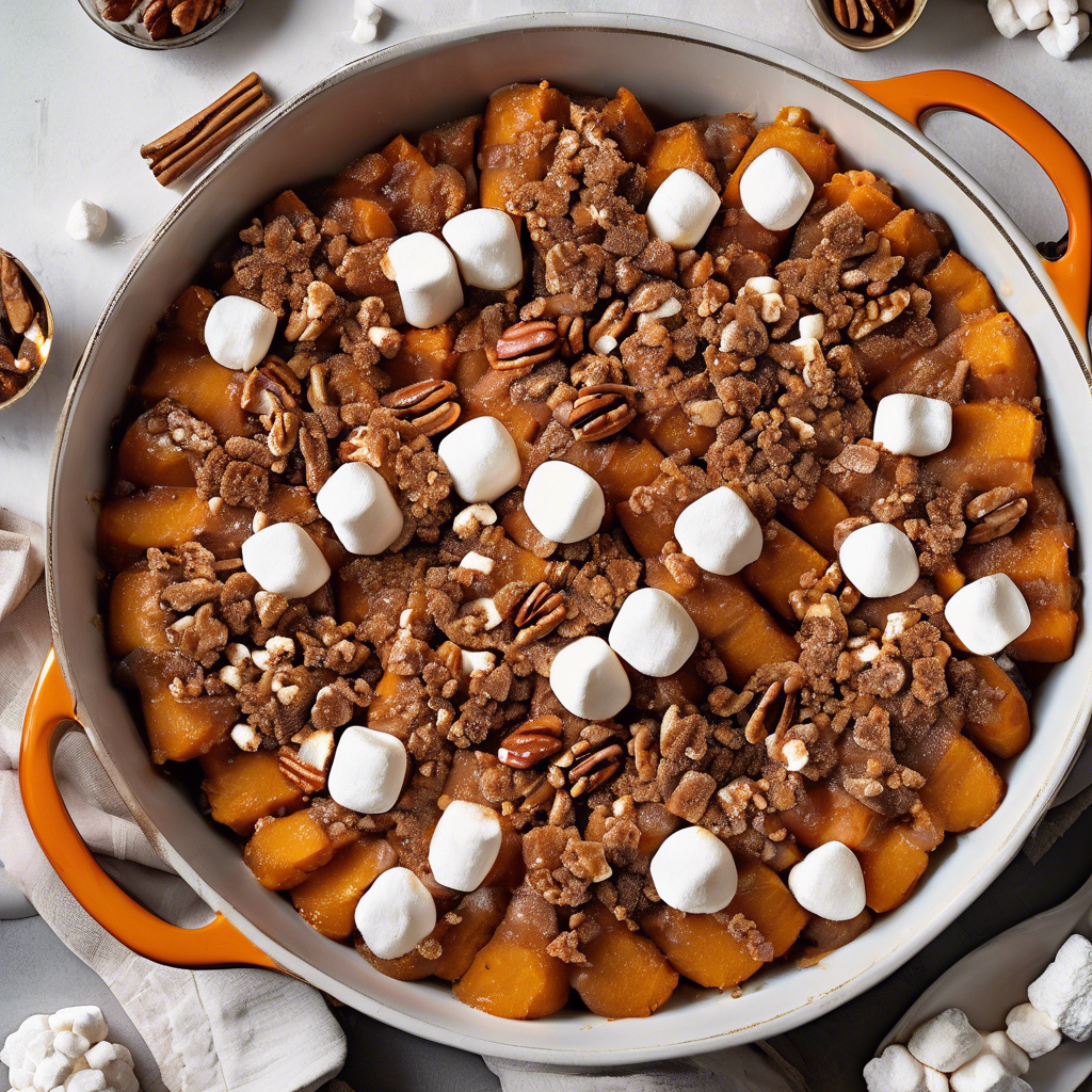 Candied yams with marshmallows and a pecan streusel topping is a classic Southern dish that has been a staple on holiday tables for generations. This sweet and indulgent side dish is a beloved part of traditional Southern cuisine, particularly popular in states like Georgia, Louisiana, and South Carolina. The history of this dish can be traced back to African American culinary traditions, where sweet potatoes were a common ingredient in many dishes. Over time, the addition of marshmallows and pecan streusel became a signature touch, adding a delightful contrast of textures and flavors to the naturally sweet yams. Renowned chefs like Paula Deen and Emeril Lagasse have popularized this dish, incorporating their own unique twists and techniques. Today, you can find exceptional versions of candied yams with marshmallows and pecan streusel at iconic Southern restaurants like The Lady and Sons in Savannah, Georgia, and Commander's Palace in New Orleans, Louisiana. To make the best candied yams with marshmallows and pecan streusel, it's crucial to select high-quality yams that are tender and flavorful. Additionally, the pecan streusel topping should be perfectly crisp and golden, providing a delightful crunch to complement the soft yams and gooey marshmallows. While the traditional method involves baking the dish in the oven, some chefs also recommend grilling or smoking the yams for a unique twist on this beloved recipe.