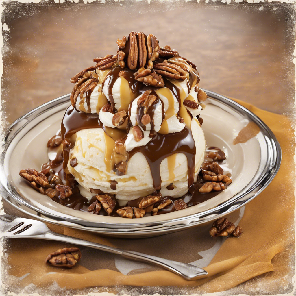 The Caramel Pecan Turtle Sundae is a decadent dessert that has been delighting taste buds for decades. This indulgent treat features creamy vanilla ice cream topped with rich caramel sauce, crunchy pecans, and luscious chocolate fudge. The addition of extra caramel sauce takes this classic sundae to the next level, creating a symphony of sweet, nutty, and buttery flavors. Originating in the United States, this dessert has become a beloved staple in ice cream parlors and restaurants across the country. Chefs and dessert enthusiasts have put their own spin on this timeless treat, adding their signature touches to elevate its flavors. For the best version of this dish, head to renowned ice cream parlors or dessert shops known for their exceptional caramel creations. The key to perfecting this sundae lies in the quality of the caramel sauce and the freshness of the pecans. Whether it's drizzling the extra caramel sauce just before serving or using premium vanilla ice cream, attention to detail is crucial in crafting the ultimate Caramel Pecan Turtle Sundae.