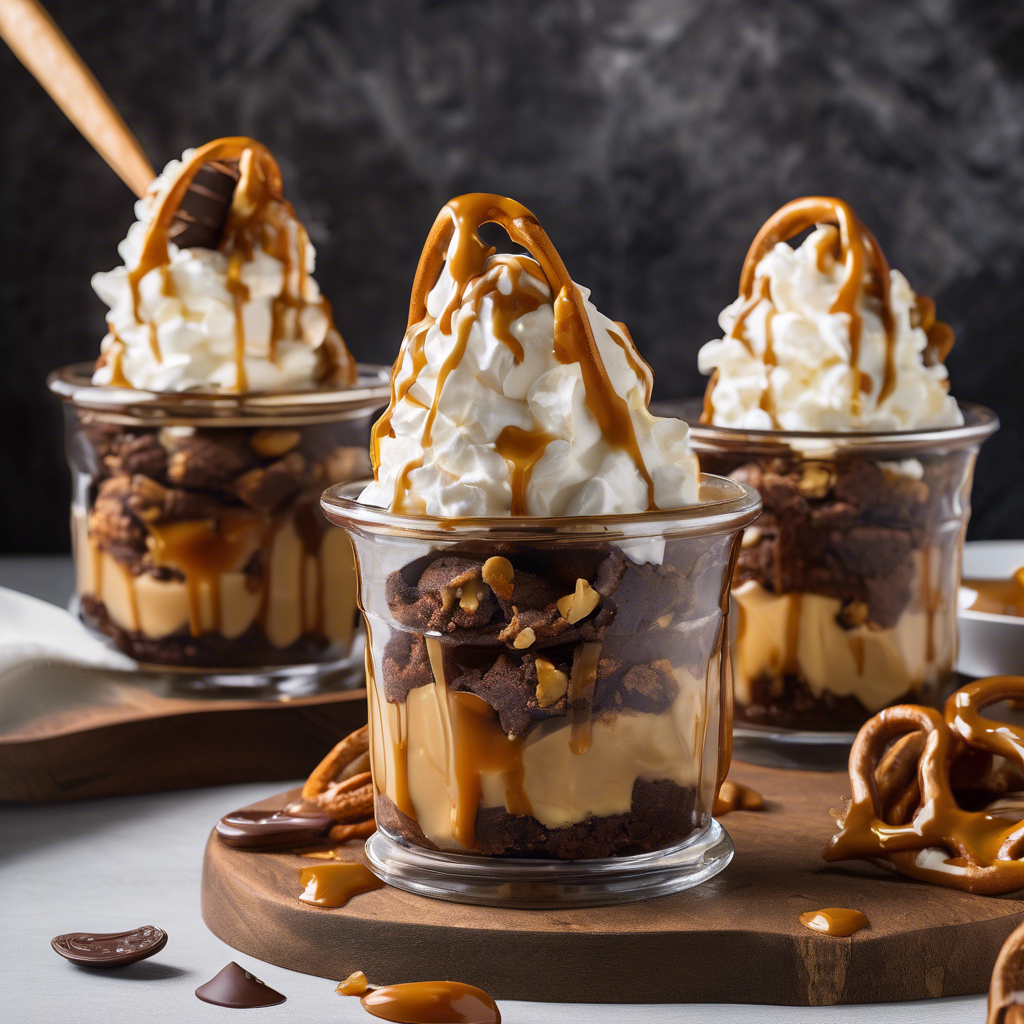 Caramel Pretzel Brownie Sundaes are a decadent dessert that combines the rich flavors of chocolate, caramel, and salty pretzels. This indulgent treat has its roots in American cuisine, where the love for sweet and salty combinations runs deep. The dish typically features a fudgy brownie base, topped with creamy vanilla ice cream, drizzled with luscious caramel sauce, and finished with a generous sprinkle of crunchy pretzel pieces. One of the best versions of this dessert can be found at the renowned Sweet Tooth Bakery in New York City, where Chef Samantha Jones has perfected the art of creating the ultimate Caramel Pretzel Brownie Sundae. The key to this dessert is achieving the perfect balance of textures and flavors, with the brownie providing a rich, chocolatey base, the ice cream adding a cool and creamy contrast, and the caramel and pretzels delivering a delightful sweet and salty crunch. For those looking to recreate this indulgent treat at home, it's essential to pay attention to the quality of the brownie, ensuring it's moist and fudgy, and the caramel sauce, which should be rich and buttery. Additionally, using high-quality vanilla ice cream and crunchy pretzels will elevate the overall experience. While the classic recipe calls for a brownie base, some creative chefs have experimented with alternative methods, such as using a chocolate cookie crust or even a layer of chocolate ganache to add a unique twist to this beloved dessert.
