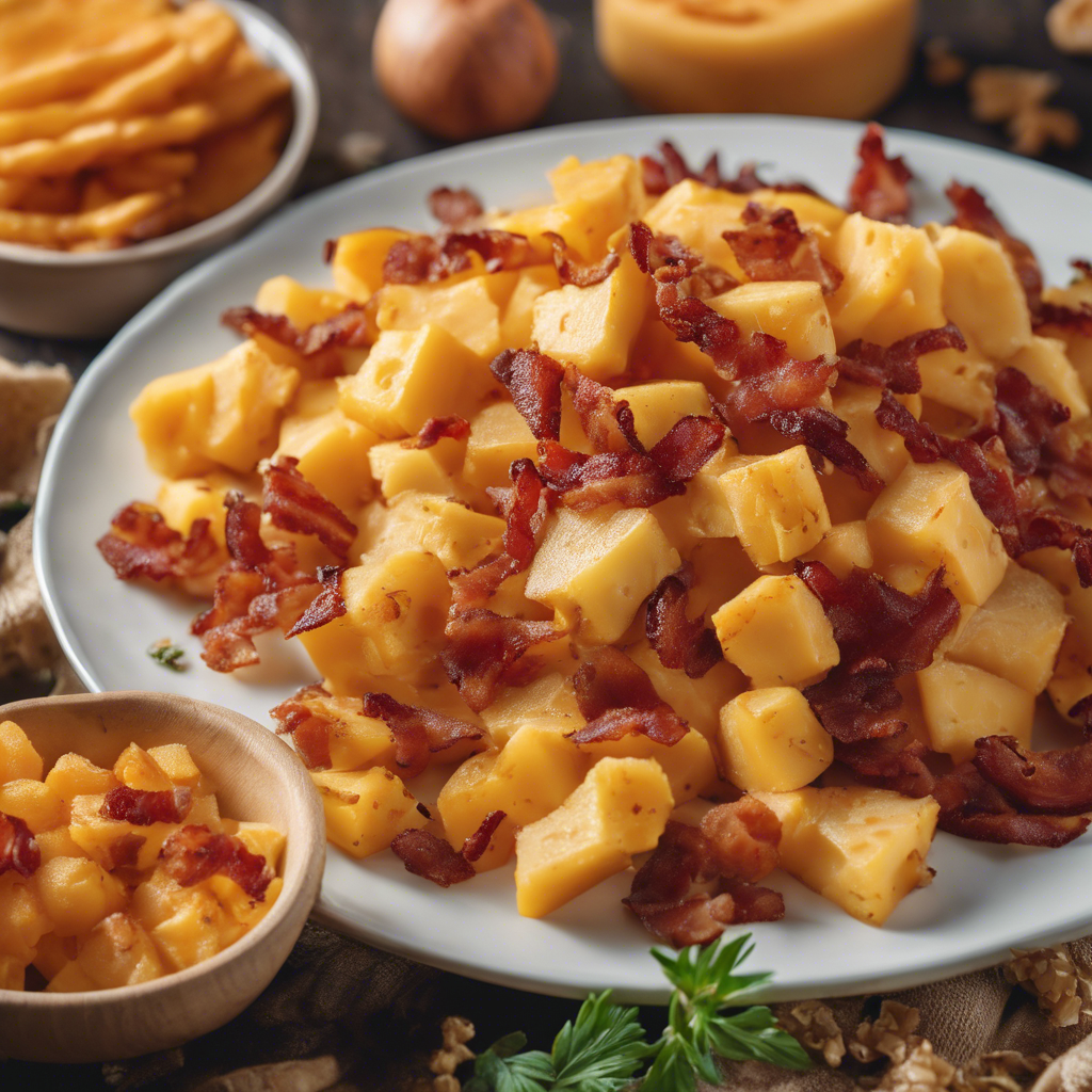 Cheddar Cheese Home Fries with bacon bits is a hearty and indulgent dish that has its roots in American diner cuisine. The crispy, golden-brown home fries are infused with the rich, sharp flavor of cheddar cheese and the savory goodness of bacon bits. This dish has become a staple on breakfast and brunch menus across the United States, loved for its comforting and satisfying flavors. One of the earliest mentions of Cheddar Cheese Home Fries with bacon bits can be traced back to diners in the Midwest during the mid-20th century. Chefs in these bustling, no-frills eateries sought to create a dish that would appeal to the hearty appetites of their patrons, and thus the combination of crispy home fries, melted cheddar cheese, and savory bacon bits was born. Today, this dish can be found on menus in diners and breakfast joints throughout the country, with each chef adding their own unique twist. Some may opt for thick-cut bacon, while others might use a blend of different cheeses to elevate the flavor profile. The key to a perfect Cheddar Cheese Home Fries with bacon bits lies in achieving the ideal balance of crispy, tender potatoes, gooey melted cheese, and the smoky, salty goodness of the bacon. For those seeking the best version of this dish, diners in the Midwest and Southern regions of the United States are renowned for their mastery of Cheddar Cheese Home Fries with bacon bits. The combination of hearty, down-home cooking and a love for bold flavors makes these regions a prime destination for experiencing this classic dish at its finest. Whether enjoyed as a standalone breakfast delight or as a side dish to accompany eggs and toast, Cheddar Cheese Home Fries with bacon bits is a beloved comfort food that continues to hold a special place in the hearts of diners and food enthusiasts alike.