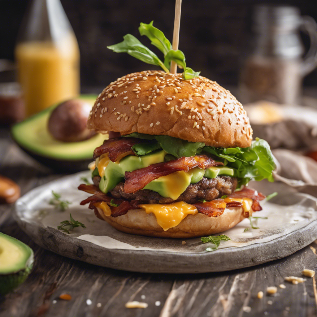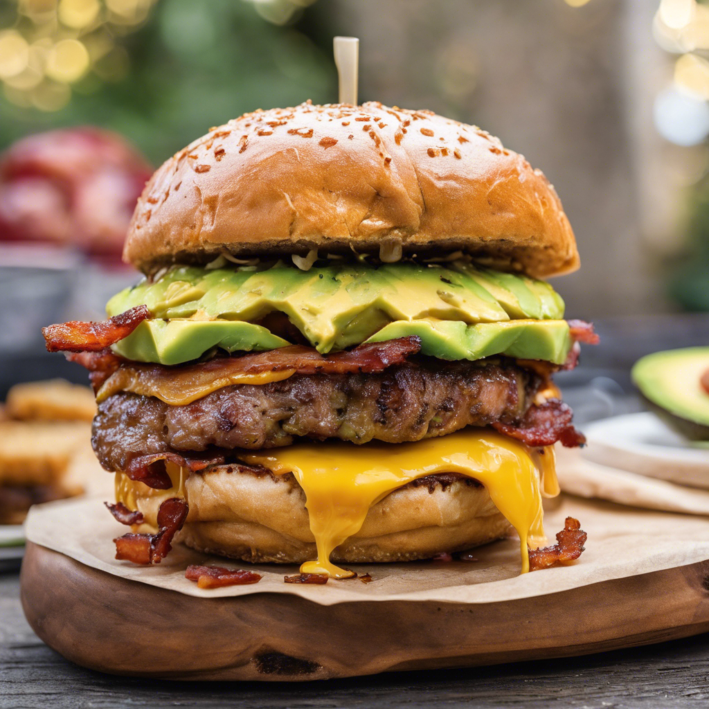 The Cheese-Stuffed Bacon and Avocado Burger is a mouthwatering creation that has gained popularity in recent years. This indulgent burger features a juicy patty stuffed with gooey cheese, crispy bacon, and creamy avocado, all sandwiched between a soft, toasted bun. This delectable dish has its roots in the United States, where it has become a favorite at many burger joints and restaurants. Chefs across the country have put their own spin on this burger, adding unique toppings and sauces to elevate its flavors. For the best version of this dish, head to renowned burger spots in cities like Los Angeles, New York, or Chicago. The key to nailing this burger is ensuring the patty is cooked to perfection, the cheese is melted just right, and the avocado is ripe and creamy. Whether grilled, fried, or barbecued, this burger is a must-try for any food enthusiast.