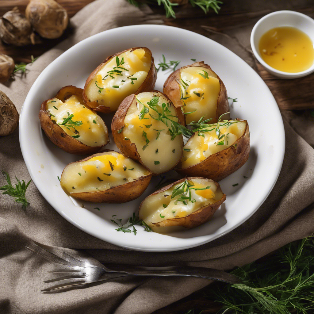 The history of Cheesy Baked Potatoes with a sprinkle of truffle oil can be traced back to the fusion of traditional baked potato recipes with the luxurious addition of truffle oil. Renowned chefs in regions like Italy and France began experimenting with truffle oil, infusing its rich, earthy flavor into classic dishes. This culinary innovation soon made its way to upscale restaurants around the world, where chefs elevated the humble baked potato by adding a touch of truffle oil and a generous serving of gooey, melted cheese. Today, this indulgent dish can be found in top-notch steakhouses and fine dining establishments, where the perfect balance of creamy cheese, fluffy potato, and aromatic truffle oil creates a truly unforgettable culinary experience. For the best version of this dish, sourcing high-quality truffle oil and selecting the finest cheese are crucial. Alternatively, some chefs opt for a unique twist by incorporating truffle-infused cheese for an even more decadent flavor profile.
