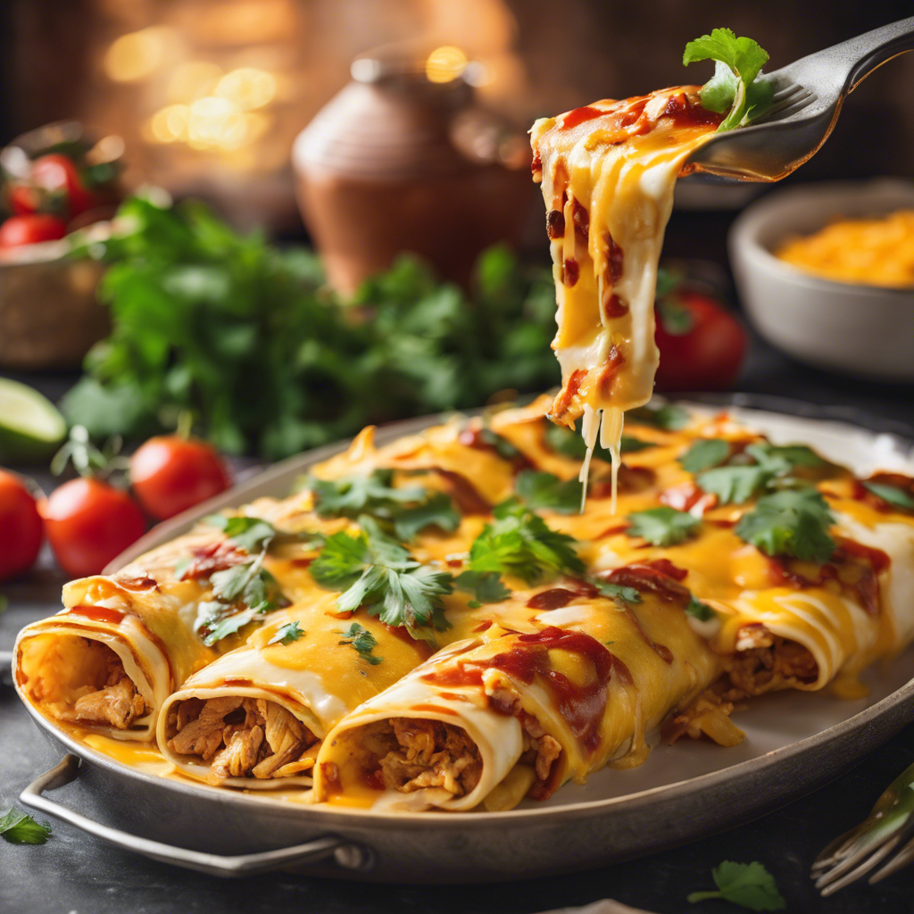 Cheesy Chicken Enchiladas have a rich history dating back to ancient Mayan and Aztec civilizations, where corn tortillas were filled with various meats and rolled. The dish evolved over centuries, with Spanish influence adding cheese and the use of chicken. Today, this beloved Mexican comfort food is a staple in Tex-Mex cuisine. Renowned chefs like Rick Bayless and Diana Kennedy have popularized their own versions, incorporating authentic Mexican flavors and techniques. The key to a perfect Cheesy Chicken Enchilada lies in the balance of tender, flavorful chicken, gooey melted cheese, and a zesty, homemade enchilada sauce. For the best version, head to the Southwest United States, where restaurants like El Fenix in Dallas serve up legendary enchiladas. Alternatively, consider adding a touch of smoky chipotle peppers or using a green tomatillo sauce for a unique twist on this classic dish.