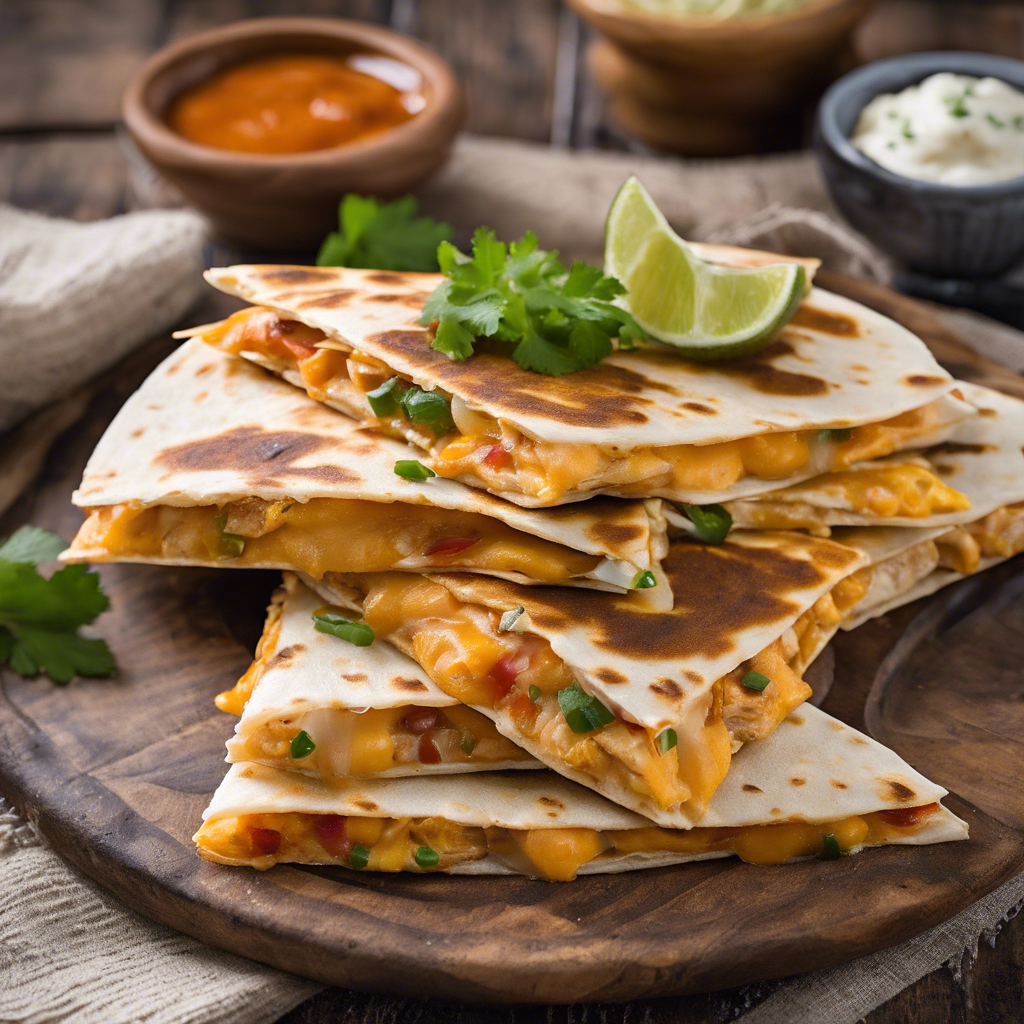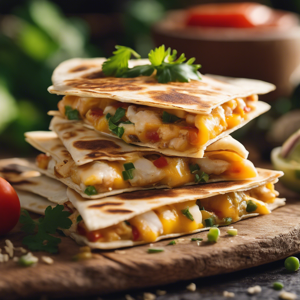 Cheesy Chicken Quesadillas have a rich history rooted in Mexican cuisine. This beloved dish is a fusion of flavors, combining tender chicken, gooey cheese, and zesty spices, all enveloped in a warm, crispy tortilla. The origins of this dish can be traced back to the vibrant street food culture of Mexico, where talented chefs would skillfully prepare these quesadillas on sizzling griddles, infusing them with authentic flavors and aromas. Today, the best versions of this dish can be found in Mexican restaurants across the United States, particularly in regions with a strong Mexican culinary influence, such as California, Texas, and New Mexico. The key to perfecting this dish lies in the quality of the cheese, the tenderness of the chicken, and the balance of spices. For a unique twist, some chefs incorporate alternative ingredients like caramelized onions, jalapeños, or avocado, adding depth and complexity to the classic recipe. Whether enjoyed as a snack, appetizer, or main course, Cheesy Chicken Quesadillas continue to captivate food enthusiasts with their irresistible combination of flavors and textures.
