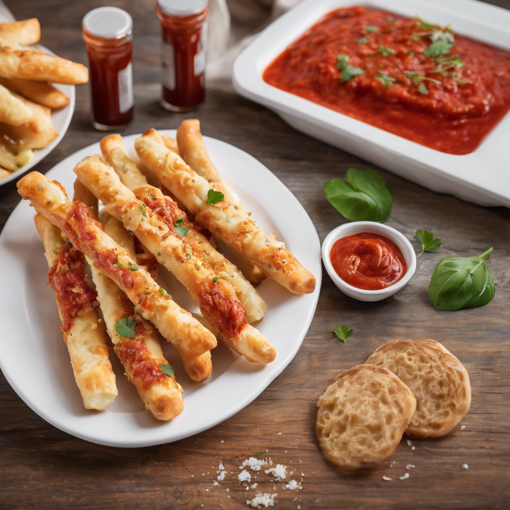 - While the breadsticks are baking, prepare the marinara dipping sauce. In a saucepan, combine 1 can of crushed tomatoes, 1 teaspoon of dried oregano, 1/2 teaspoon of dried basil, 1/2 teaspoon of garlic powder, and salt and pepper to taste. Simmer over low heat for 10 minutes, stirring occasionally.
