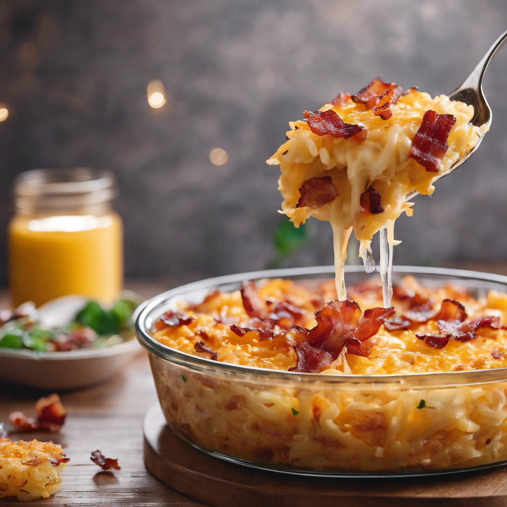 Cheesy Hashbrown Casserole with crispy bacon topping has a rich history rooted in American comfort food. This beloved dish gained popularity in the Midwest, where it became a staple at potlucks and family gatherings. The creamy, cheesy hashbrown base is elevated by the addition of crispy bacon, adding a delightful crunch and savory flavor. Renowned chefs like Paula Deen and Ree Drummond have popularized their own versions of this classic casserole, incorporating their unique twists. Today, the best versions of this dish can be found in cozy diners and family-owned restaurants across the Midwest. The key to a perfect Cheesy Hashbrown Casserole lies in achieving the ideal balance of creamy, cheesy goodness and crispy, flavorful bacon. It's essential to use high-quality cheese and perfectly cooked bacon to elevate this dish to its full potential. For a delicious alternative, some chefs incorporate diced ham or sausage for a delightful variation on this timeless favorite.