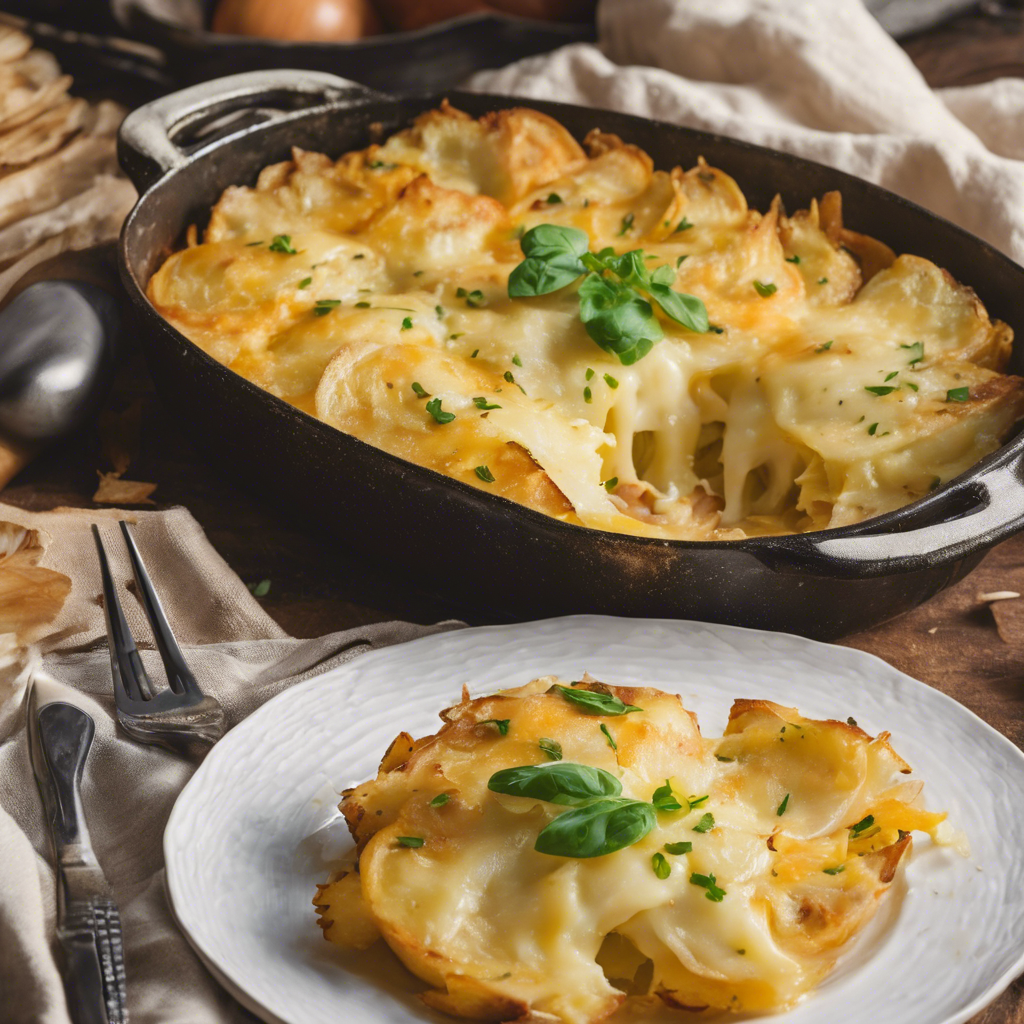 The history of Cheesy Scalloped Potatoes with a hint of garlic can be traced back to the 18th century in France. This classic dish, also known as "Gratin Dauphinois," originated in the Dauphiné region and was popularized by French chef Auguste Escoffier. The creamy, indulgent combination of thinly sliced potatoes, rich cheese sauce, and a subtle hint of garlic quickly gained popularity and spread to other regions. Today, this beloved dish can be found on the menus of upscale restaurants and cozy bistros around the world. Chefs often put their own spin on the recipe, using a variety of cheeses such as Gruyère, cheddar, or Parmesan to create a unique flavor profile. The key to a perfect Cheesy Scalloped Potatoes lies in achieving the ideal balance of creamy, tender potatoes, flavorful cheese, and just the right amount of garlic. For a twist on the classic, some chefs incorporate ingredients like caramelized onions, bacon, or fresh herbs to elevate the dish even further. In terms of the best version of this dish, many food enthusiasts argue that the ultimate Cheesy Scalloped Potatoes can be found in the heart of the French countryside, where traditional methods and locally sourced ingredients are used to create an unparalleled culinary experience. However, with the right recipe and technique, home cooks can also achieve restaurant-quality results in their own kitchens. When making Cheesy Scalloped Potatoes at home, it's essential to select high-quality potatoes, such as Yukon Gold or Russet, and to slice them uniformly for even cooking. The cheese sauce should be rich and velvety, with a delicate balance of garlic to enhance the overall flavor without overpowering the dish. Whether served as a side dish or a comforting main course, Cheesy Scalloped Potatoes with a hint of garlic is a timeless classic that continues to delight food lovers of all ages.