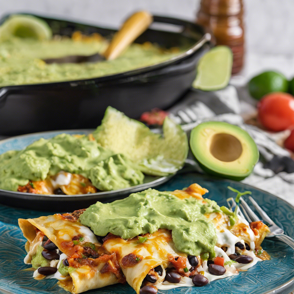 The history of Chicken and Black Bean Enchiladas dates back to the ancient Mayan and Aztec civilizations, where corn tortillas were filled with various ingredients and rolled up. This dish has evolved over the centuries, with the addition of Spanish influences such as chicken and black beans. Today, it is a popular Mexican dish enjoyed worldwide. The best version of this dish can be found in authentic Mexican restaurants, where skilled chefs use traditional recipes and fresh, high-quality ingredients. The key to a delicious Chicken and Black Bean Enchilada lies in the flavorful filling and the perfect balance of spices. Pairing it with a side of creamy guacamole adds a refreshing and indulgent touch to the meal.