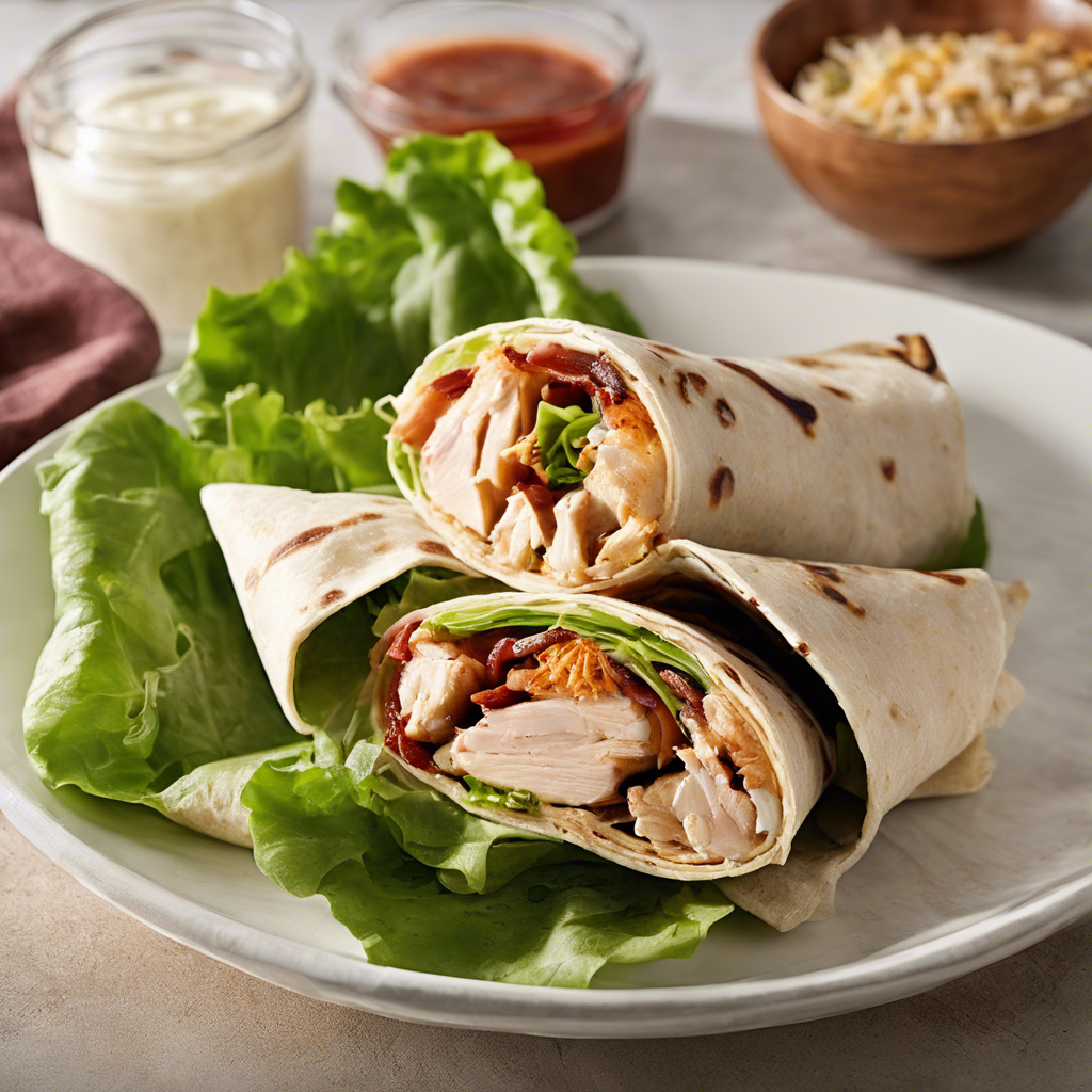 - To assemble the wraps, place a tortilla on a clean surface and top with shredded lettuce and sliced tomato. Place a cheesy bacon-wrapped chicken breast on top and drizzle with ranch dressing.