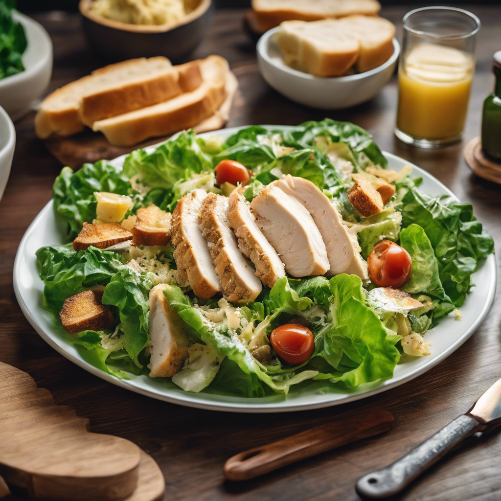 - Serve the Chicken Caesar Salad with the freshly baked garlic bread on the side.
