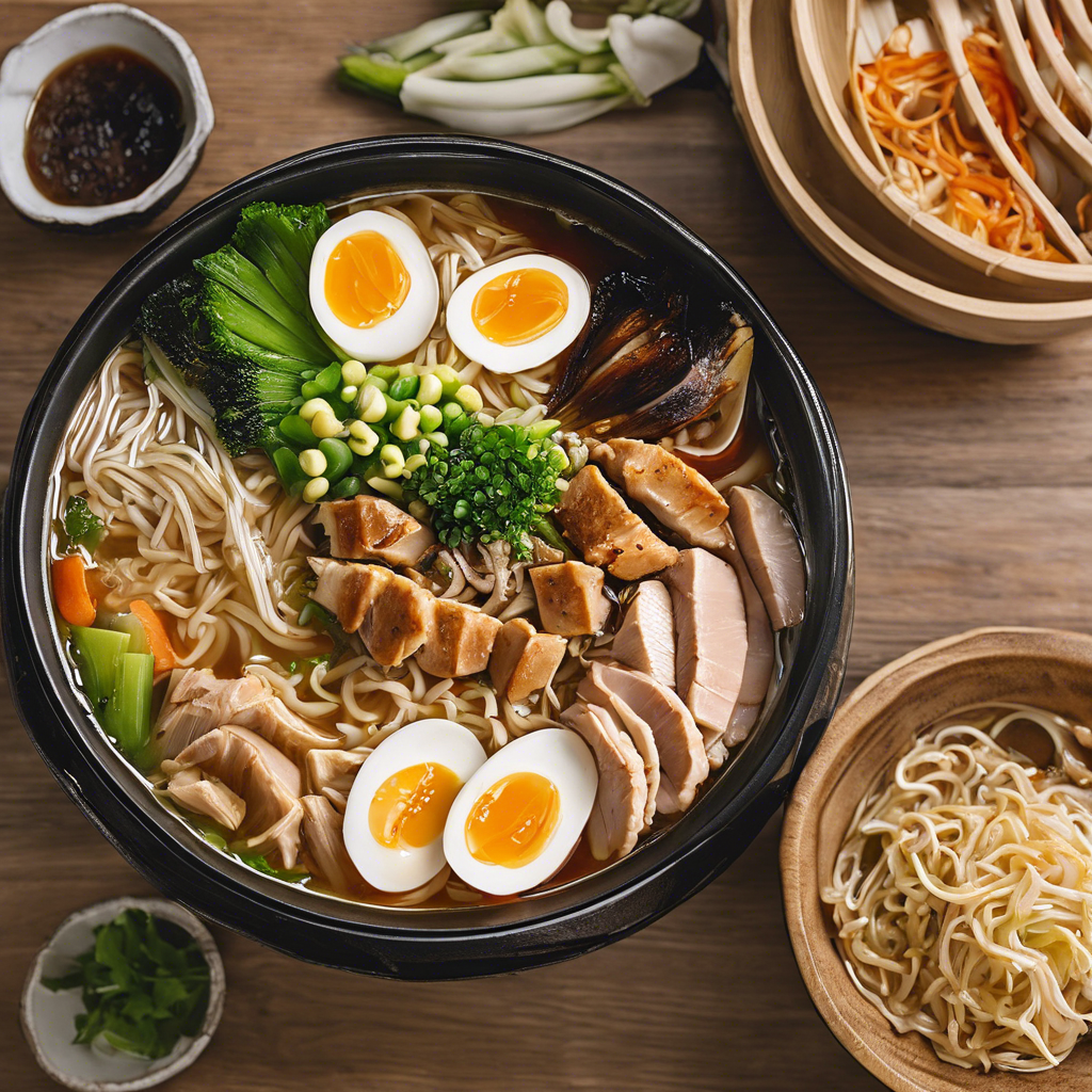 Chicken Ramen with extra vegetables is a popular and flavorful dish that has a rich history in Japanese cuisine. This beloved noodle soup has its origins in the bustling streets of Japan, where it has been enjoyed for generations. The dish typically features succulent pieces of chicken, savory broth, and a variety of fresh, crunchy vegetables, such as bok choy, carrots, and mushrooms, adding a delightful burst of flavor and nutrition. In the bustling kitchens of Tokyo and Osaka, skilled chefs meticulously prepare Chicken Ramen with extra vegetables, ensuring that each ingredient is perfectly balanced to create a harmonious and satisfying culinary experience. The dish has also gained popularity in the West, with many restaurants offering their own unique twists on this classic recipe. For those seeking the best version of this dish, a visit to renowned ramen shops in Japan, such as Ichiran or Ippudo, is a must. These establishments are celebrated for their dedication to crafting exceptional ramen dishes, including Chicken Ramen with extra vegetables. Additionally, mastering the art of preparing the broth and selecting high-quality, fresh vegetables are crucial elements in creating an outstanding Chicken Ramen with extra vegetables. While the traditional method of preparing Chicken Ramen with extra vegetables involves simmering the broth for hours to achieve a rich, complex flavor, there are also alternative methods, such as using a pressure cooker or slow cooker, to achieve similar results in a shorter amount of time. Experimenting with different vegetable combinations and seasoning techniques can also add a unique twist to this beloved dish. In conclusion, Chicken Ramen with extra vegetables is a delightful and nourishing dish that has captivated food enthusiasts around the world. Whether enjoyed in the vibrant streets of Japan or prepared at home with a personal touch, this flavorful noodle soup continues to be a beloved culinary treasure.