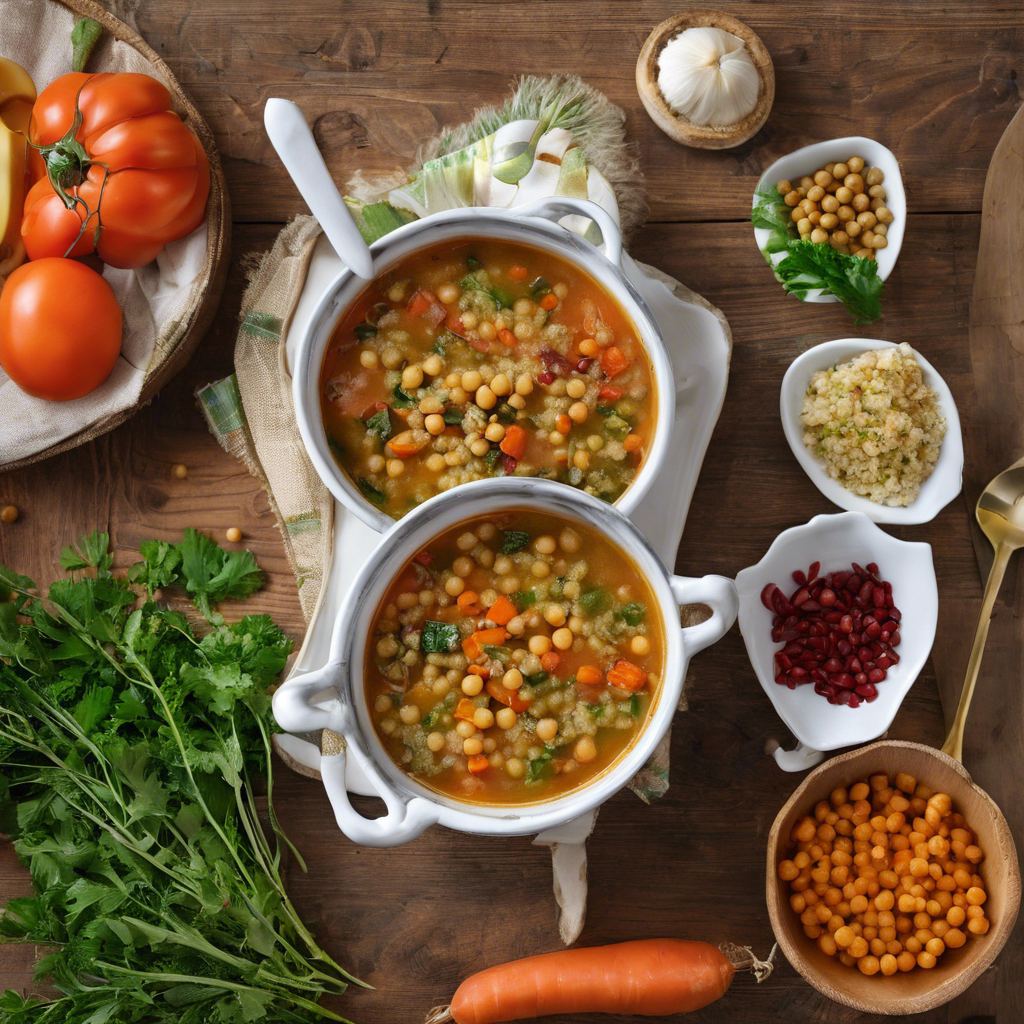 Chickpea and Vegetable Quinoa Soup is a hearty and nutritious dish that has been enjoyed for centuries across the Mediterranean and Middle Eastern regions. This wholesome soup is a staple in countries like Lebanon, Greece, and Turkey, where it is often prepared with a blend of traditional spices and fresh, locally sourced ingredients. Renowned chefs like Yotam Ottolenghi and Sami Tamimi have popularized this dish in their cookbooks, showcasing its versatility and rich flavors. The key to a perfect Chickpea and Vegetable Quinoa Soup lies in the balance of spices, the quality of the chickpeas, and the use of fresh, seasonal vegetables. For a unique twist, some chefs add a dollop of creamy tahini or a sprinkle of za'atar for an extra burst of flavor. Today, the best versions of this dish can be found in authentic Mediterranean restaurants that prioritize using organic and sustainable produce. Whether enjoyed as a comforting meal on a chilly evening or as a light lunch option, Chickpea and Vegetable Quinoa Soup continues to captivate food enthusiasts with its wholesome goodness and aromatic appeal.