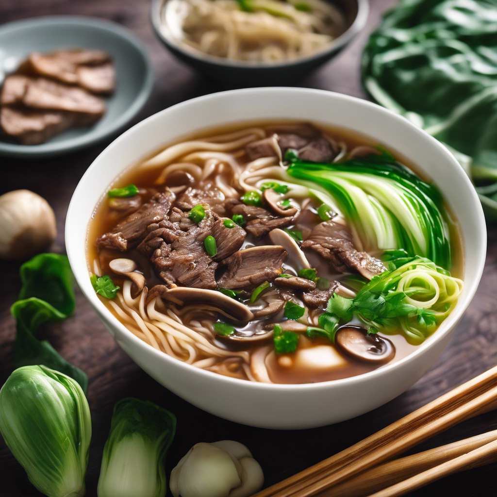 Chinese Beef Noodle Soup with Bok Choy and Mushrooms