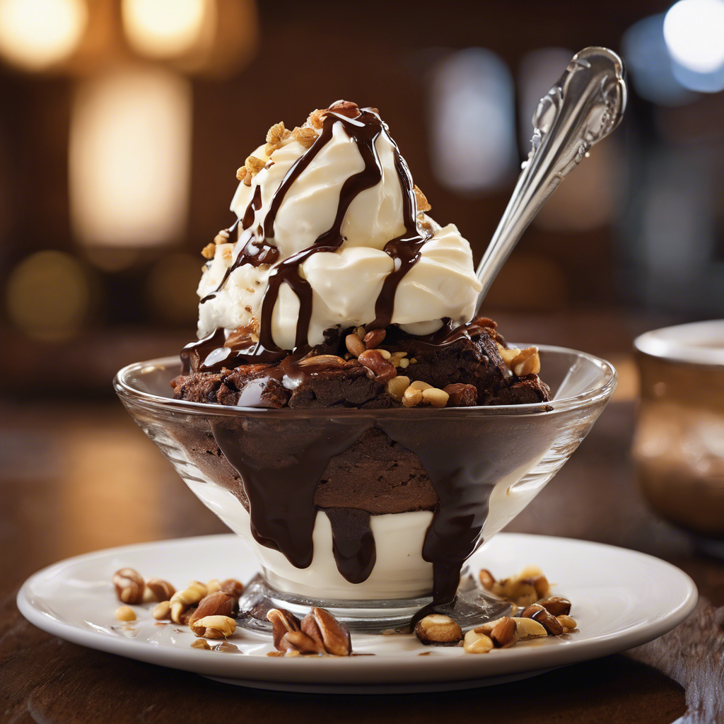 The Chocolate Brownie Sundae topped with chopped nuts is a decadent dessert that has become a classic in the world of sweets. Its origins can be traced back to the early 20th century, when it was first created in the United States. The rich, fudgy brownie is the star of the show, providing a dense and chocolatey base for the sundae. The addition of creamy vanilla ice cream and a generous drizzle of chocolate sauce takes this dessert to the next level. The final touch of chopped nuts adds a delightful crunch and nutty flavor, elevating the overall experience. In terms of its culinary history, the Chocolate Brownie Sundae has been a beloved treat in diners and ice cream parlors across America. It has been a staple on dessert menus, delighting customers with its irresistible combination of warm brownie, cold ice cream, and indulgent toppings. Chefs and dessert enthusiasts have experimented with different types of nuts to enhance the flavor profile, with options such as walnuts, pecans, and almonds being popular choices. Today, the best versions of this indulgent dessert can be found in classic American diners and upscale dessert bars, where chefs take pride in perfecting the art of the brownie sundae. While the brownie and ice cream are essential components, the quality of the chocolate sauce and the freshness of the nuts are equally important in creating a memorable sundae experience. For those looking to recreate this iconic dessert at home, there are alternative methods to consider. Some recipes call for the brownie to be served warm, while others prefer a chilled brownie base. Additionally, experimenting with different types of nuts or even adding a sprinkle of sea salt can add a unique twist to the traditional sundae. In conclusion, the Chocolate Brownie Sundae topped with chopped nuts is a timeless dessert that continues to captivate dessert lovers with its rich and indulgent flavors. Whether enjoyed at a classic diner or crafted at home with a personal touch, this dessert is a delightful celebration of chocolate, ice cream, and the satisfying crunch of chopped nuts.
