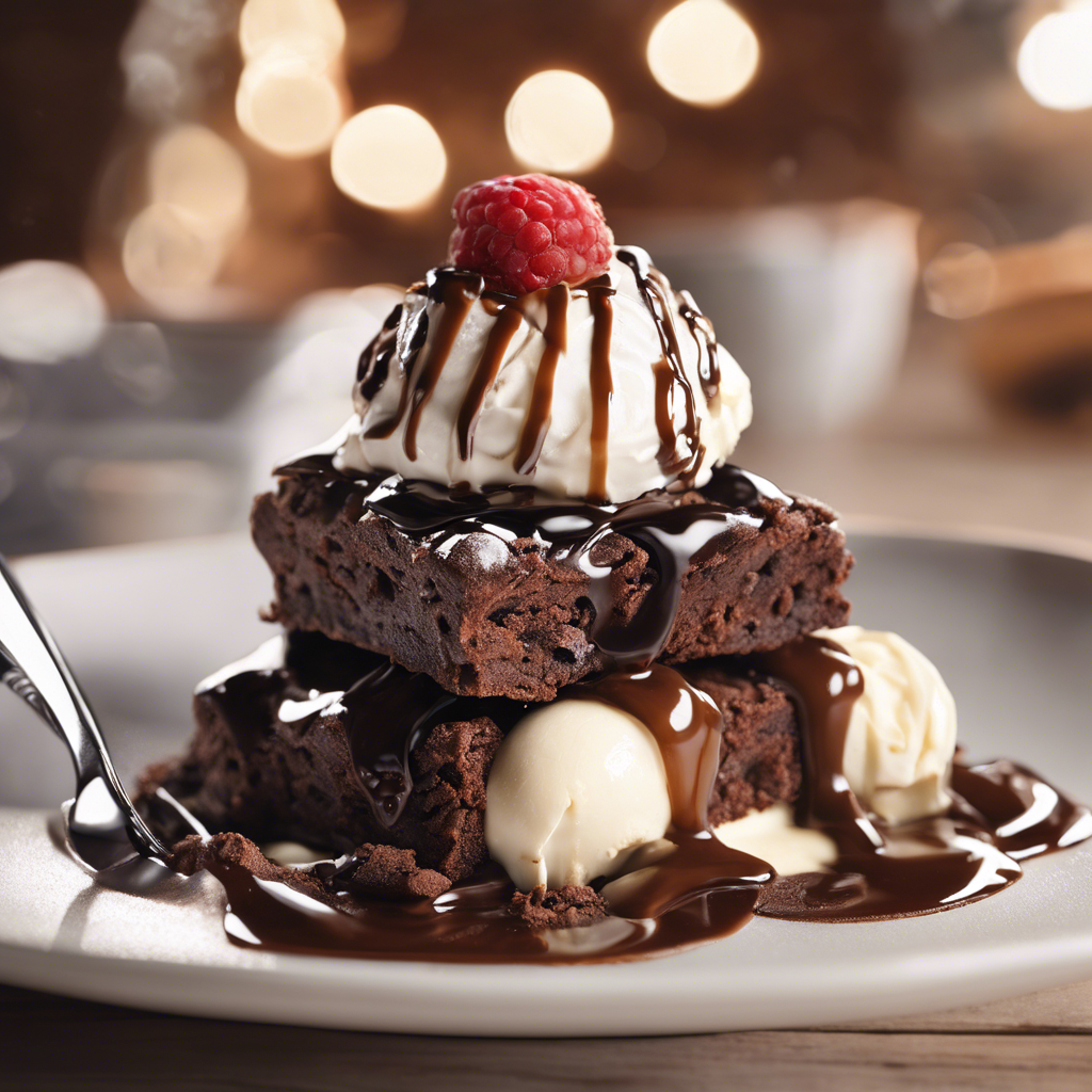 The Chocolate Brownie Sundae with a scoop of vanilla ice cream is a decadent dessert that has become a classic in the world of sweets. Its origins can be traced back to the early 20th century in the United States, where it quickly gained popularity in diners and soda fountains across the country. One of the earliest known mentions of this indulgent treat was in a menu from a New York City restaurant in the 1930s, where it was listed as a special creation by the head chef. Since then, it has become a beloved dessert in American cuisine, with variations and adaptations found in restaurants and homes nationwide. The key to a perfect Chocolate Brownie Sundae with a scoop of vanilla ice cream lies in the quality of its components. The brownie should be rich, moist, and fudgy, while the vanilla ice cream should be creamy and flavorful. When topped with luscious hot fudge, whipped cream, and a cherry, it creates a symphony of flavors and textures that is hard to resist. Today, this delightful dessert can be found on the menus of many restaurants and ice cream parlors, with each establishment putting its own unique spin on the classic recipe. For those looking to indulge in the best version of this dish, seeking out a renowned dessert spot or a specialty ice cream shop known for its high-quality ingredients is a must. For those who prefer to make it at home, experimenting with alternative methods such as adding nuts, caramel sauce, or different flavored ice creams can elevate the experience even further. Whether enjoyed in a bustling city diner or savored in the comfort of one's own kitchen, the Chocolate Brownie Sundae with a scoop of vanilla ice cream is a timeless indulgence that continues to delight dessert enthusiasts of all ages.