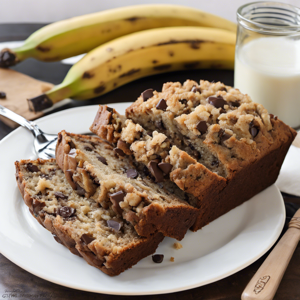 Chocolate Chip Banana Bread with a streusel topping is a delightful twist on the classic banana bread. This delectable treat combines the rich flavors of chocolate and ripe bananas with a crunchy, buttery streusel topping. The history of this delightful creation can be traced back to innovative home bakers who sought to elevate the traditional banana bread by adding a sweet and crumbly streusel topping. Today, this indulgent treat can be found in bakeries and cafes across the world, with each region adding its own unique flair to the recipe. Chefs and home bakers alike have perfected the art of creating the perfect balance of moist banana bread, rich chocolate chips, and a crispy streusel topping. For the best version of this dish, look for a recipe that uses ripe, mashed bananas, high-quality chocolate chips, and a generous layer of streusel topping. Whether enjoyed as a breakfast treat or a comforting dessert, Chocolate Chip Banana Bread with a streusel topping is sure to satisfy any sweet tooth.