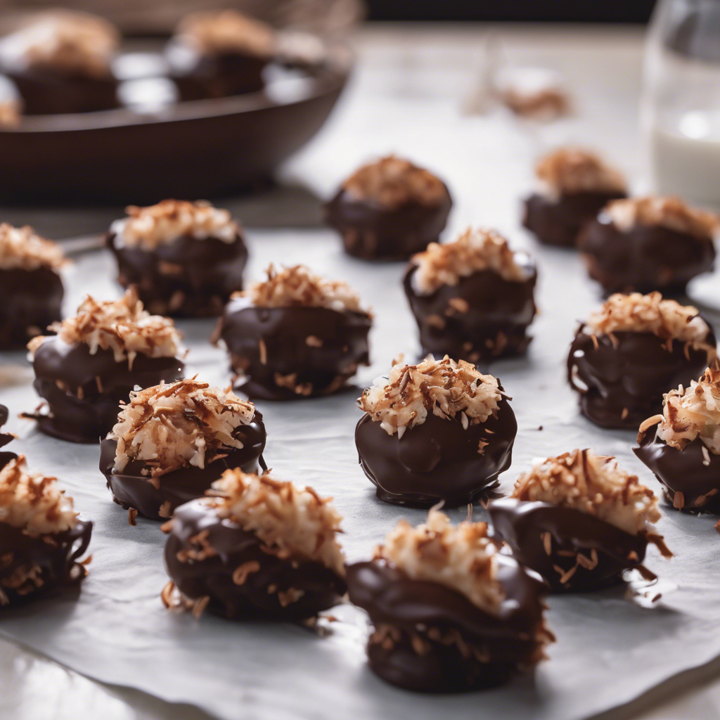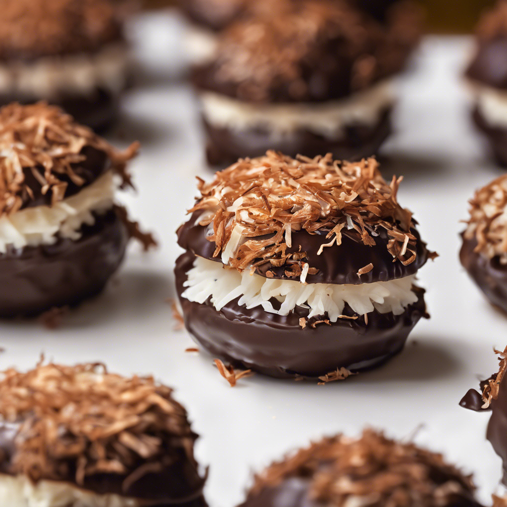 Chocolate Dipped Coconut Macaroons have a rich history dating back to the 19th century, with roots in Jewish cuisine. These delectable treats gained popularity in Europe before making their way to the United States. Renowned chefs like Ina Garten and Martha Stewart have popularized their versions of this classic dessert, adding their own unique twists. The combination of sweet coconut and rich chocolate creates a perfect balance of flavors and textures. Today, the best versions of this dish can be found in artisanal bakeries and specialty dessert shops, where attention to detail and high-quality ingredients are paramount. The key to a perfect macaroon lies in achieving the ideal balance of moist, chewy coconut and a crisp, chocolate-dipped exterior. Whether enjoyed as a standalone indulgence or as part of a dessert spread, Chocolate Dipped Coconut Macaroons continue to be a beloved treat for all occasions.