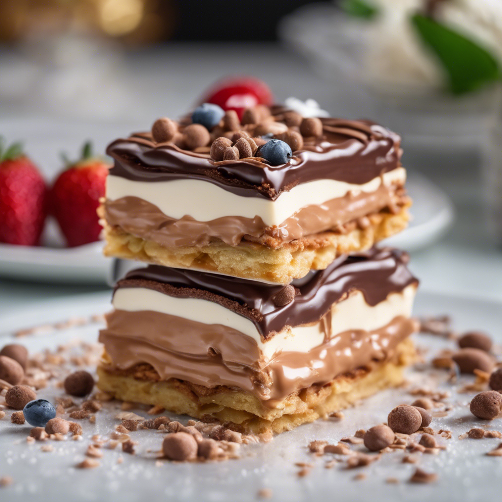 The Chocolate Eclair Cake is a delectable dessert that originated in France. It is a twist on the traditional eclair pastry, with layers of graham crackers, vanilla pudding, and chocolate frosting. This no-bake dessert has become a popular choice for potlucks, parties, and family gatherings due to its simplicity and delicious taste. The dish has evolved over time, with various chefs and home cooks adding their own unique touches, such as using different types of chocolate or adding a hint of coffee flavor to the frosting. Today, the best versions of this dish can be found in French patisseries and bakeries, where skilled pastry chefs take pride in creating the perfect balance of flavors and textures. For those looking to make this dessert at home, it's important to use high-quality chocolate and to allow enough time for the layers to set properly, ensuring a creamy and indulgent experience with every bite.
