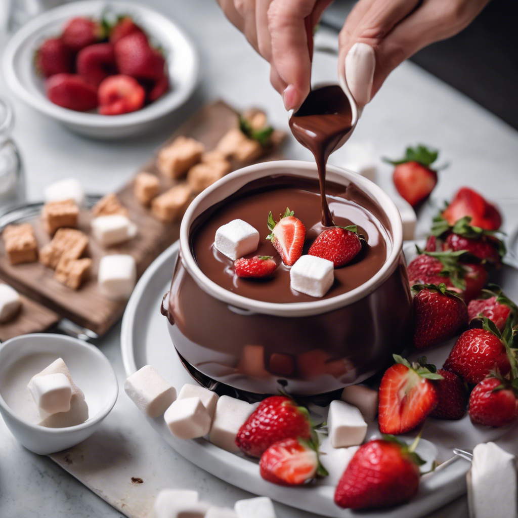 Chocolate fondue with strawberries and marshmallows for dipping has a rich history dating back to the 1960s. This delectable dessert gained popularity in the United States and quickly became a staple at upscale restaurants and social gatherings. Renowned chefs like Julia Child and Jacques Pépin popularized the dish, elevating it to a gourmet status. Today, the best version of this dish can be found in high-end restaurants and specialty dessert shops, where the quality of the chocolate is paramount. Using high-quality, rich chocolate is essential to achieving the perfect consistency and flavor. Additionally, fresh, ripe strawberries and fluffy marshmallows are crucial for a delightful dipping experience. For a fun twist, some chefs incorporate alternative methods such as adding a splash of liqueur to the chocolate for an extra depth of flavor. Whether enjoyed at a fancy restaurant or in the comfort of your own home, chocolate fondue with strawberries and marshmallows is a timeless indulgence that continues to captivate dessert enthusiasts worldwide.