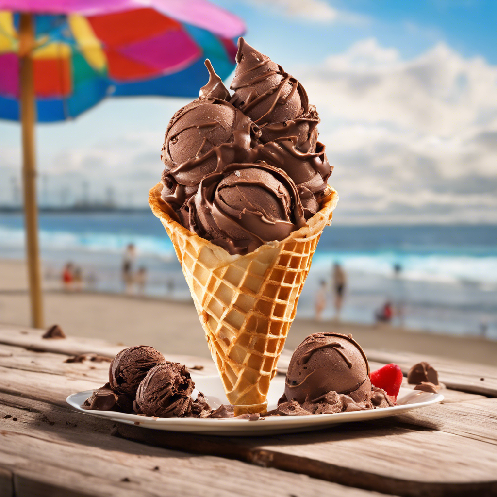 Chocolate ice cream in a waffle cone has a rich history dating back to the late 1800s when ice cream vendors in New York City began serving scoops of chocolate ice cream in crispy waffle cones. This delightful treat quickly gained popularity and became a staple at ice cream parlors across the United States. Today, this classic dessert can be found in ice cream shops and dessert parlors worldwide, with variations in recipes and presentation. Chefs and ice cream artisans have perfected the art of creating creamy, decadent chocolate ice cream and pairing it with freshly made waffle cones for a delightful indulgence. For the best version of this dish, head to renowned ice cream parlors in cities like New York, San Francisco, and Paris, where skilled chefs craft the perfect balance of rich chocolate flavor and crispy waffle cone texture. The key to getting this dish right lies in using high-quality cocoa for the ice cream and freshly baked waffle cones to achieve that perfect combination of flavors and textures. Alternatively, some chefs have experimented with unique methods such as infusing the waffle cone with hints of cocoa or adding chocolate chunks to the ice cream for an extra indulgent experience.
