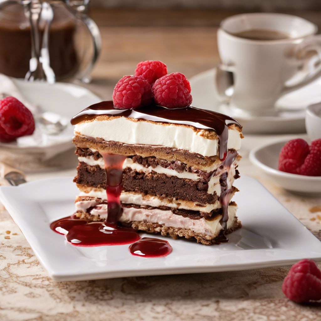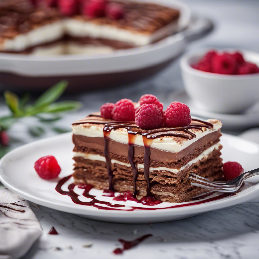 Chocolate Tiramisu with a drizzle of raspberry sauce is a decadent twist on the classic Italian dessert. This indulgent treat combines layers of creamy mascarpone cheese, rich chocolate, and delicate ladyfinger cookies soaked in espresso. The addition of a tangy raspberry sauce adds a burst of fruity flavor that perfectly complements the sweetness of the chocolate. This delightful variation of Tiramisu has gained popularity in upscale restaurants and bakeries, particularly in regions known for their culinary expertise such as Tuscany and Piedmont. For the best version of this dish, seek out establishments with skilled pastry chefs who can expertly balance the flavors of chocolate, raspberry, and espresso. When making this dessert at home, it's crucial to use high-quality chocolate and fresh raspberries to achieve the perfect balance of flavors. Whether enjoyed at a renowned restaurant or homemade with care, Chocolate Tiramisu with a drizzle of raspberry sauce is sure to delight dessert enthusiasts with its luscious combination of flavors.