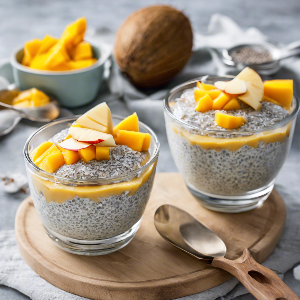 Coconut Chia Pudding with Mango Slices is a delightful tropical treat that has gained popularity in recent years due to its health benefits and delicious flavor. This dish has its roots in the ancient Mayan and Aztec civilizations, where chia seeds were prized for their energy-boosting properties. The modern version of this dish has been popularized by health-conscious chefs and food bloggers, who have added a twist by incorporating creamy coconut milk and sweet mango slices. Today, this dish can be found in trendy cafes and health food restaurants in tropical regions like Hawaii, Thailand, and the Caribbean. The key to a perfect Coconut Chia Pudding with Mango Slices lies in the quality of the chia seeds, ripe mangoes, and rich coconut milk. For a unique twist, some chefs also add a splash of fresh lime juice or a sprinkle of toasted coconut flakes for added texture and flavor. Whether enjoyed as a refreshing breakfast or a guilt-free dessert, this dish is a must-try for anyone seeking a taste of the tropics.