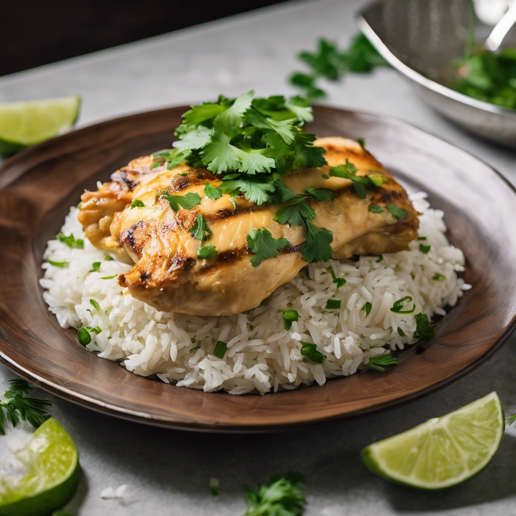 Coconut Chicken with Cilantro Lime Rice is a popular dish with origins in Southeast Asian cuisine. The dish features tender chicken marinated in a creamy coconut milk and seasoned with aromatic spices, then grilled or baked to perfection. The Cilantro Lime Rice, a zesty and fragrant side, complements the rich flavors of the chicken with its refreshing citrusy notes. This dish has gained popularity in the United States, particularly in coastal regions where fresh seafood and tropical flavors are celebrated. Chefs like Nigella Lawson and Jamie Oliver have put their own spin on this dish, incorporating their unique culinary styles. For the best version of this dish, seek out restaurants specializing in Southeast Asian or fusion cuisine. The key to nailing this dish lies in achieving the perfect balance of coconut, spices, and citrus in the marinade, as well as cooking the chicken to juicy perfection. Alternatively, for a vegetarian twist, tofu or cauliflower can be substituted for the chicken, offering a delightful variation of this beloved dish.