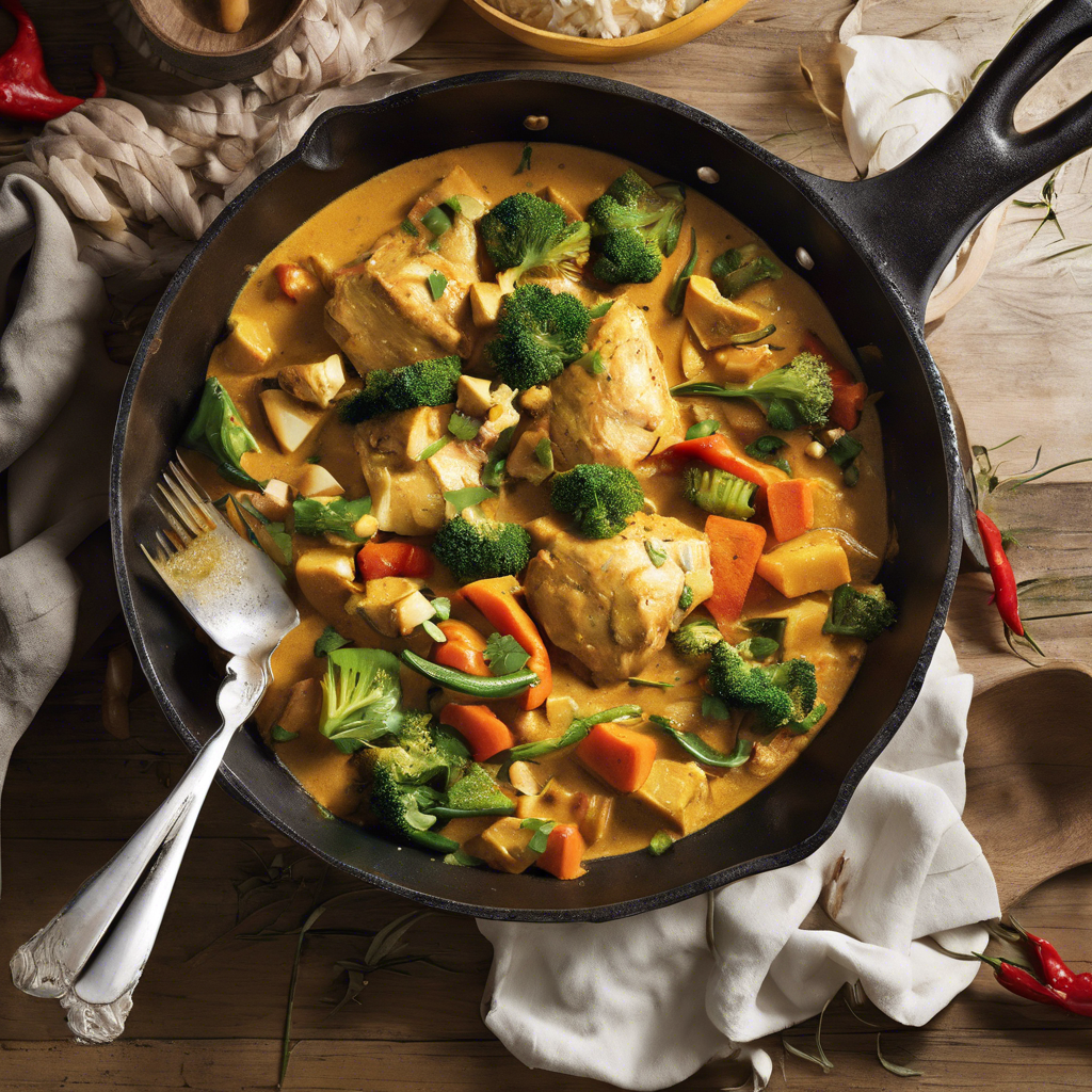 Coconut Curry Chicken and Vegetable Skillet is a flavorful and aromatic dish that originated in Southeast Asia. This dish is a fusion of rich coconut milk, fragrant curry spices, tender chicken, and a variety of fresh vegetables. It is a popular and beloved dish in Thai and Indian cuisine, known for its creamy texture and bold flavors. Chefs in Thailand and India have perfected the art of balancing the sweetness of coconut milk with the heat of curry spices, creating a harmonious and satisfying dish. The key to a delicious Coconut Curry Chicken and Vegetable Skillet lies in using high-quality coconut milk, fresh spices, and a medley of colorful vegetables. For an authentic experience, seek out restaurants that specialize in Thai or Indian cuisine, where skilled chefs prepare this dish with traditional techniques and authentic ingredients. Whether enjoyed with fragrant jasmine rice or fluffy naan bread, this dish is a delightful culinary adventure that captures the essence of Southeast Asian cuisine.